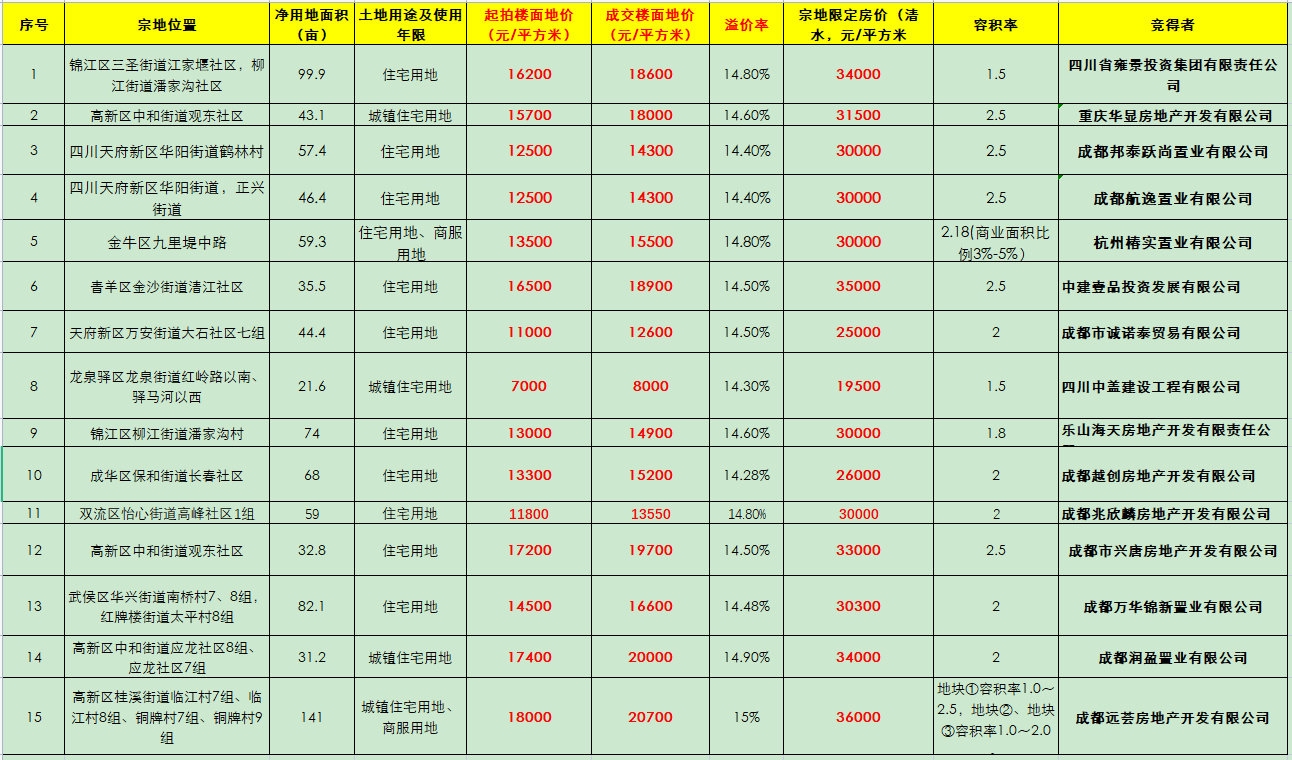 2023年成都首轮土拍中达到土地最高限价熔断后成交地块详情