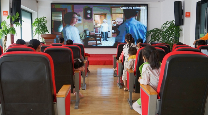 四川省社区青少年宫(梁家巷示范宫)的“红领巾剧场”为社区的孩子们播放公益电影。