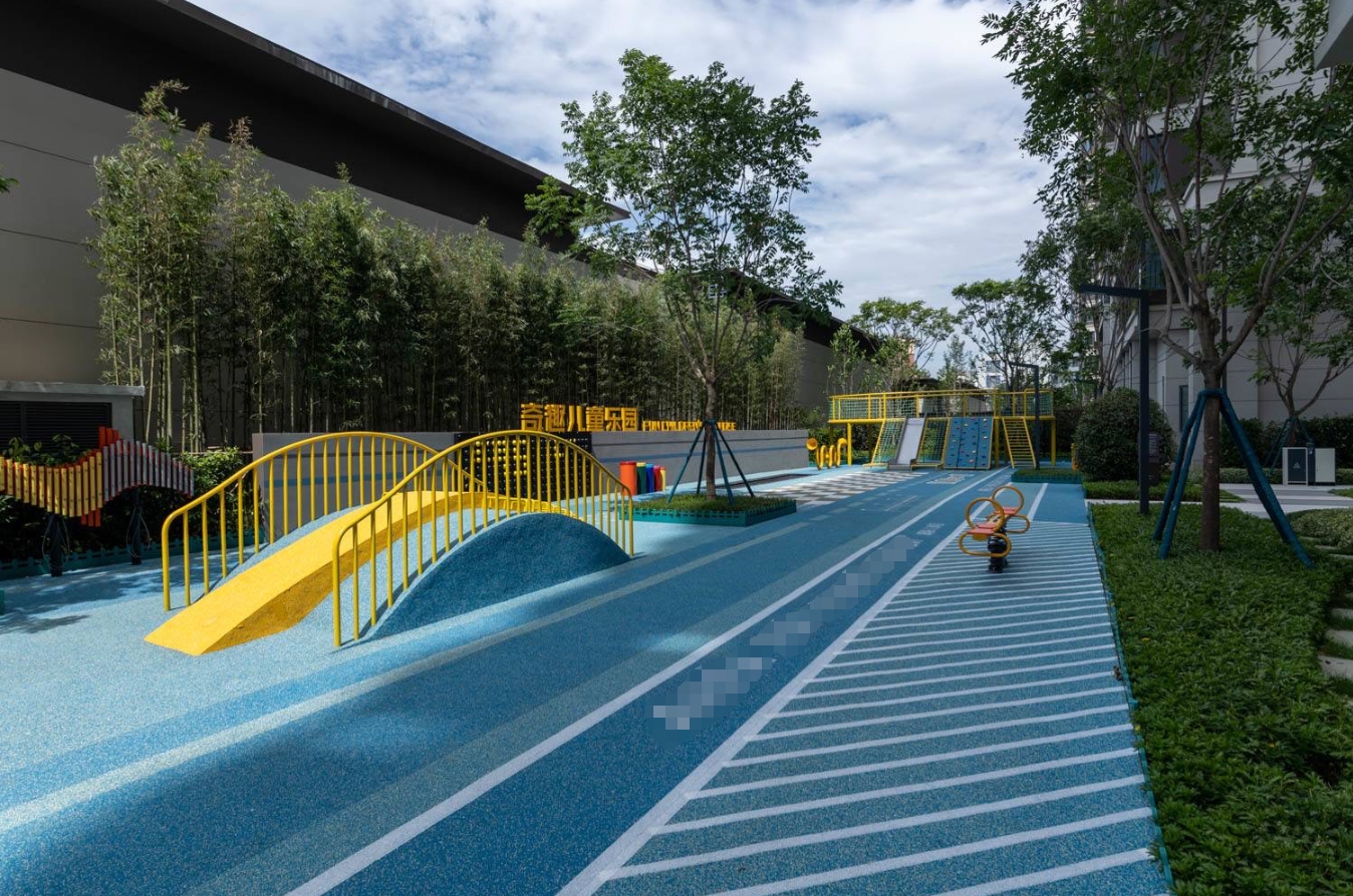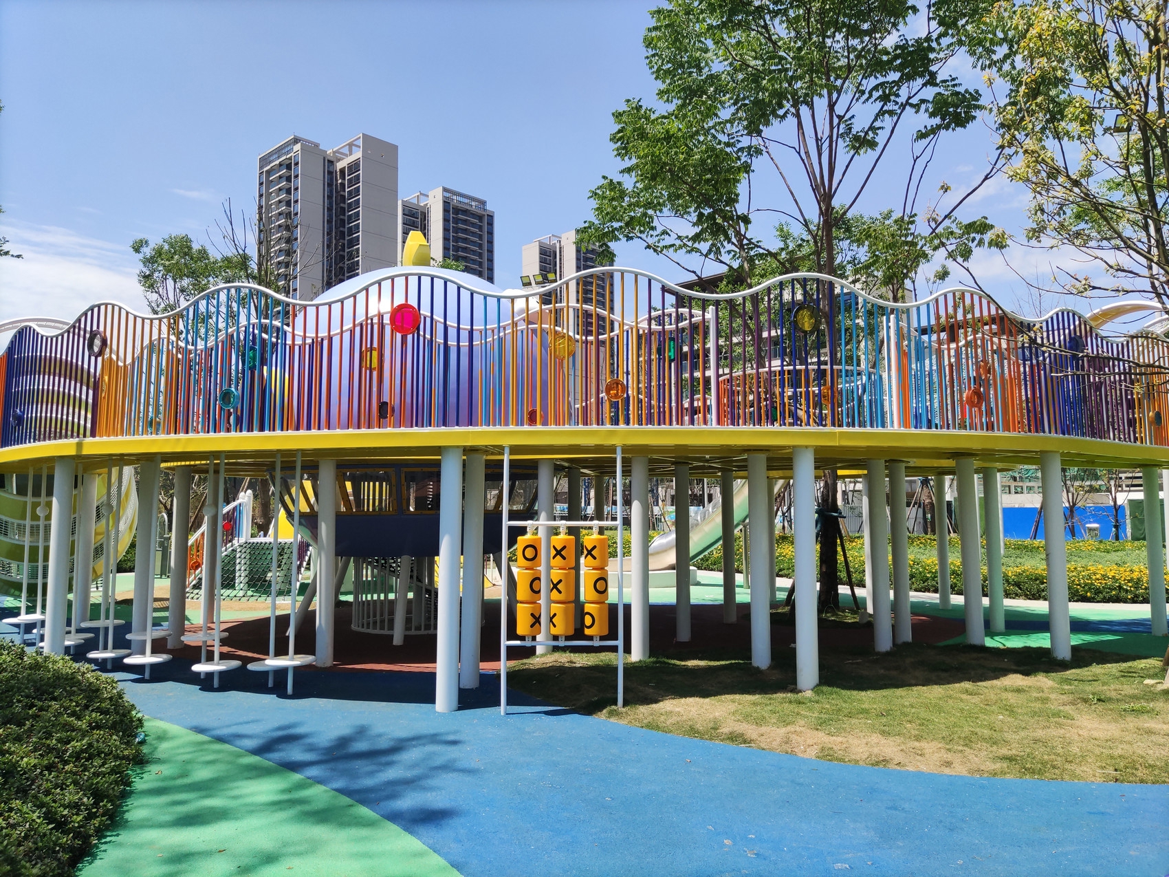 在2022年交付的时代之城1期项目中,华润置地打造了约600㎡的全龄段儿童乐园。传声筒、摇摇椅、攀爬绳、滑梯,一体化童趣项目的设计满足了不同年龄段孩子的游玩需求……这里也成为孩子们的聚集玩耍地。