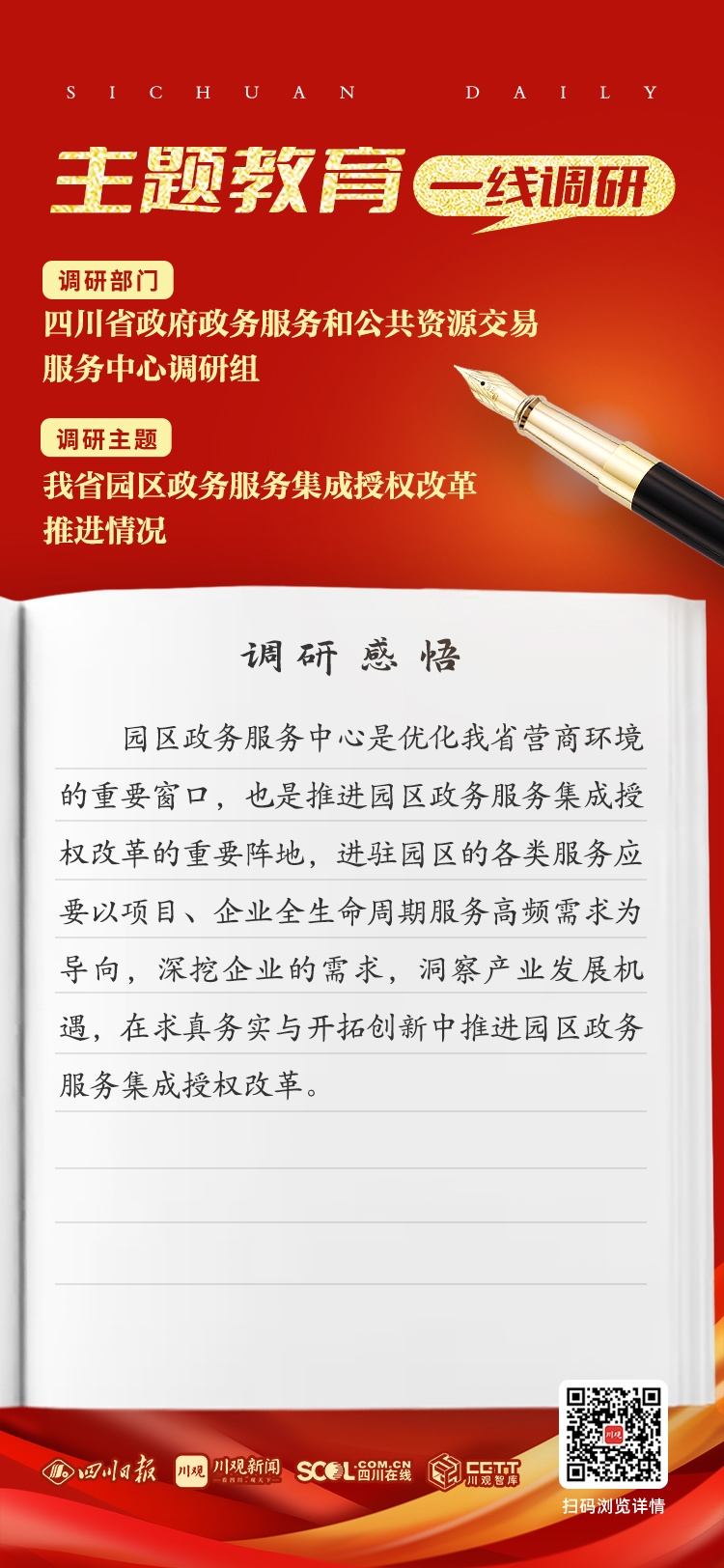 “目前四川省将园区政务服务集成授权改革存在的问题纳入主题教育整改内容,着力破解园区集成授权改革存在的法律障碍和机制阻碍,以推动此项工作走深走实。”省中心政务服务管理处相关负责人介绍,通过调研发现,当前我省园区集成授权改革方面还存在下放事项不到位、承接能力不足等问题,下一步将结合四类园区产业发展需求,依法下放一批跨层级的行政审批事项,同时加大综合窗口改革力度,把部分急需审批事项受理前端前移至园区政务服务中心,实现园区事园区办。
