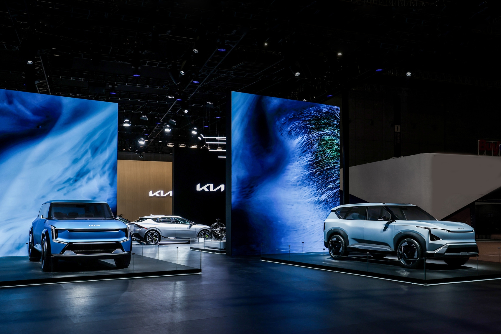 起亚品牌的纯电动车型在2023上海国际车展进行展示
