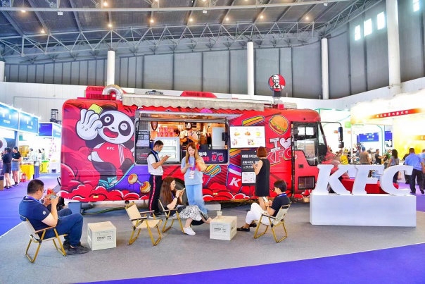 沿着场馆中轴线继续往前行,一辆张贴着憨态可掬大熊猫图案和肯德基美食车贴的移动餐车,吸引了不少人的注意力,原来这是肯德基在西南地区推出的首辆移动餐车。