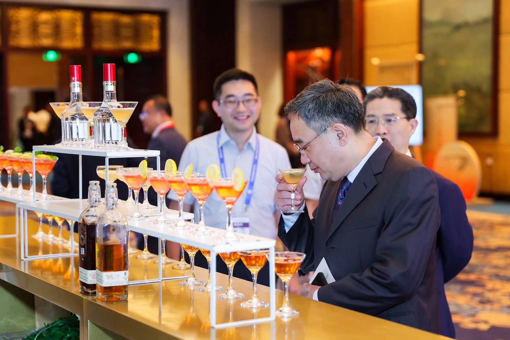 参会嘉宾品尝五粮液美酒。