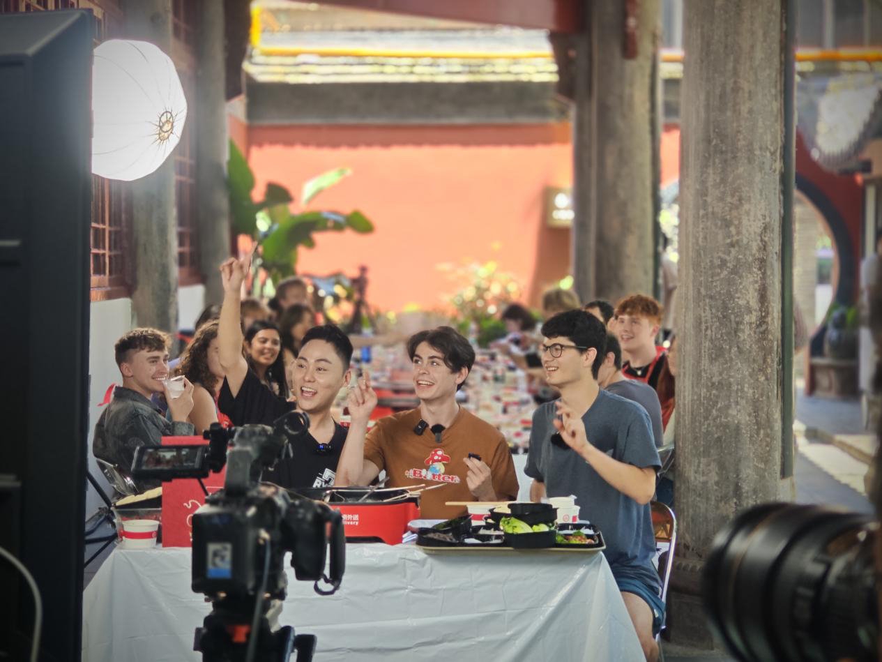 与此同时,来自耶鲁大学、宾夕法尼亚大学、布朗大学等高校的30名美国师生以及西南交大的师生们,在成都陕西会馆的庭院里也享用了海底捞外送的定制团餐。海底捞外送服务人员在现场介绍了每个菜品涮煮的时长、不同小料的调制方式。4名在7月过生日的美国大学生被“海底捞式生日祝福”感动到,另外海底捞外送工作人员还带来了川剧变脸、特色捞面等表演。
