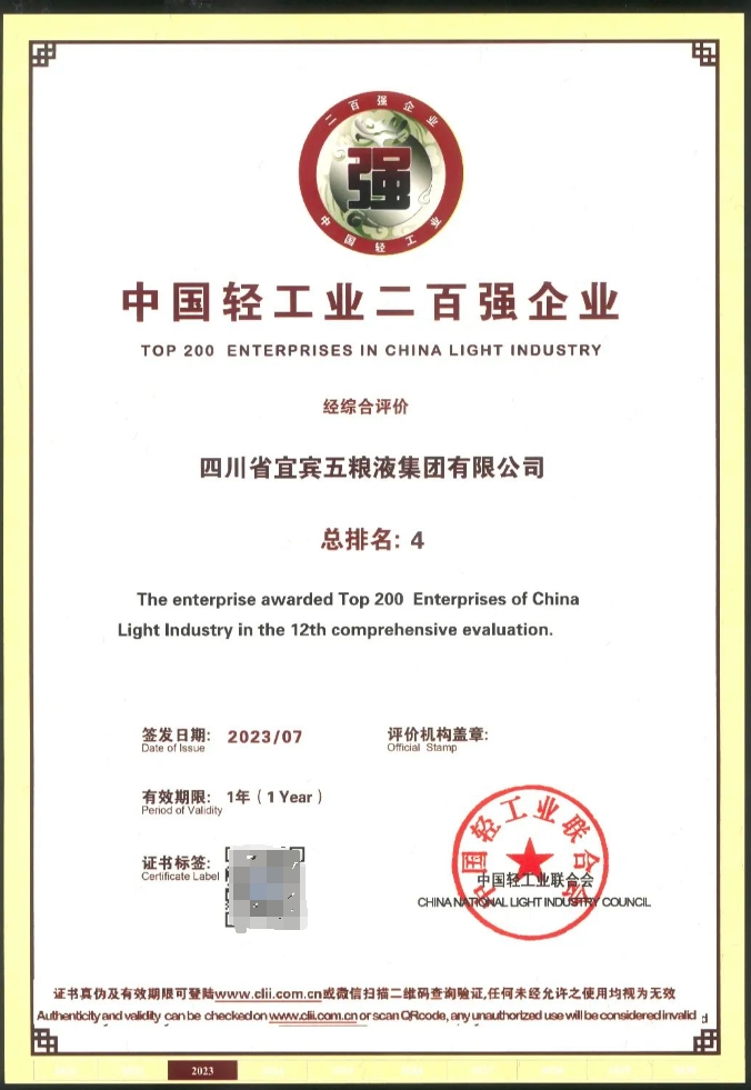 7月20日,2023年中国轻工业百强企业高峰论坛在北京举行,论坛上发布了2022年度“中国轻工业二百强企业”“中国轻工业食品行业五十强企业”“中国轻工业科技百强企业”“轻工装备制造五十强企业”名单。五粮液以酒类行业最高分名列前茅,位居“中国轻工业食品行业五十强企业”首位、“中国轻工业二百强企业”第四位、“中国轻工业科技百强企业”第十三位。