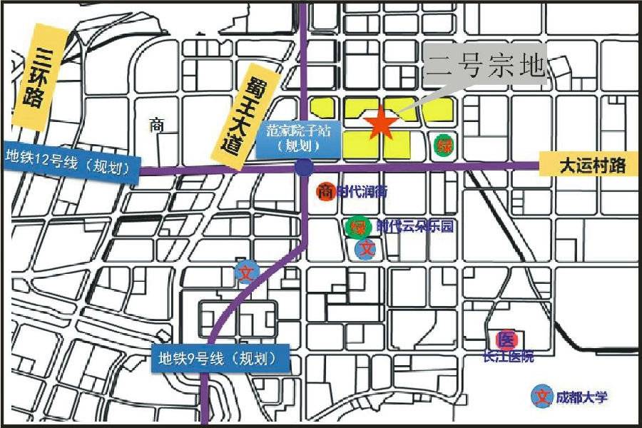 在二圈层中,宗地住宅清水限价最高的是龙泉驿区十陵板块的174亩地块,该地块也是此次拟出让宗地中面积最大的。该地块为纯住宅用地,容积率1.88,起拍楼面地价为9000元/㎡,起拍总价约19.6亿元,宗地住宅清水限价为24000元/㎡。从宗地位置看,该地块距离规划中的范家院子TOD较近,这里将是地铁9号线二期和12号线一期的交汇处,建成后交通将十分便捷。地块周边有华润时代之城、龙湖三千云锦等项目在售。届时或将吸引众多开发商抢拍。