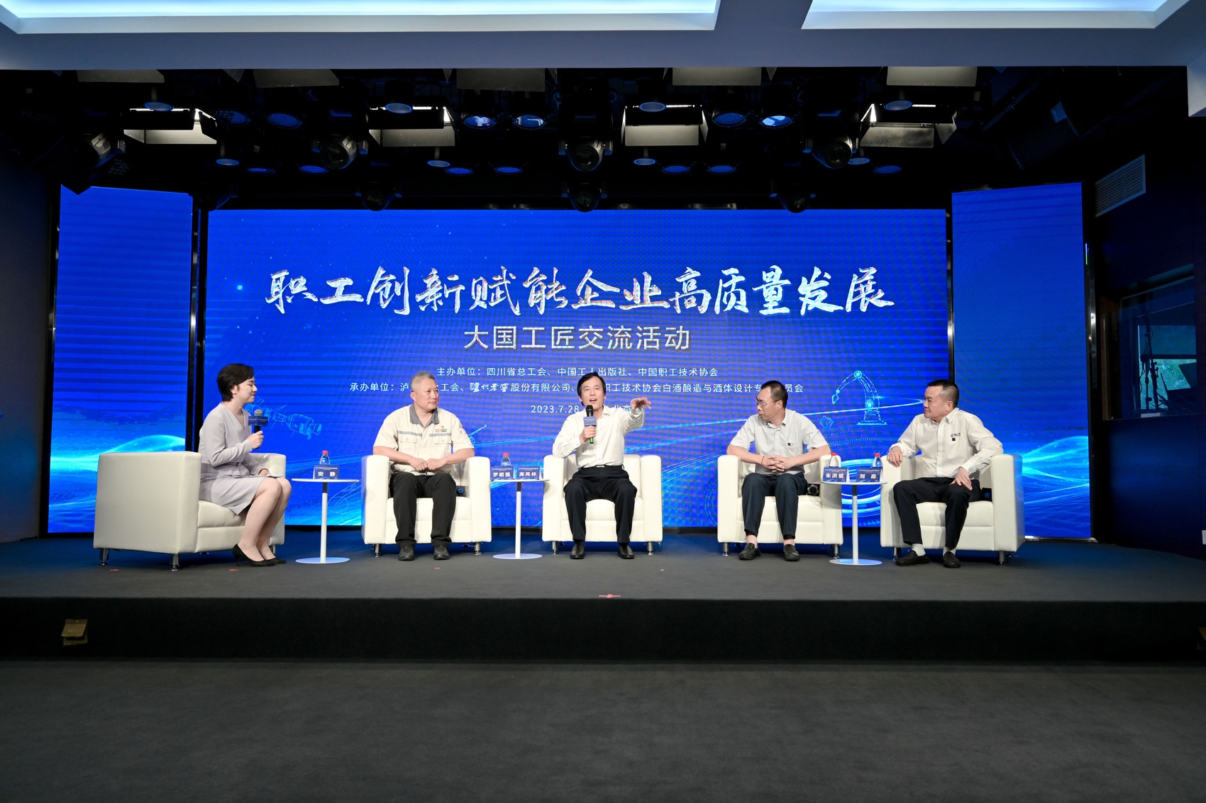 为深化产业工人队伍建设改革,努力培养造就更多大国工匠,7月28日下午,由四川省总工会、中国工人出版社、中国职工技术协会主办,泸州市总工会、泸州老窖股份有限公司、中国职工技术协会白酒酿造与酒体设计专委会承办,以职工创新赋能企业高质量发展为主题的大国工匠交流活动在北京泸州老窖综合中心举行。