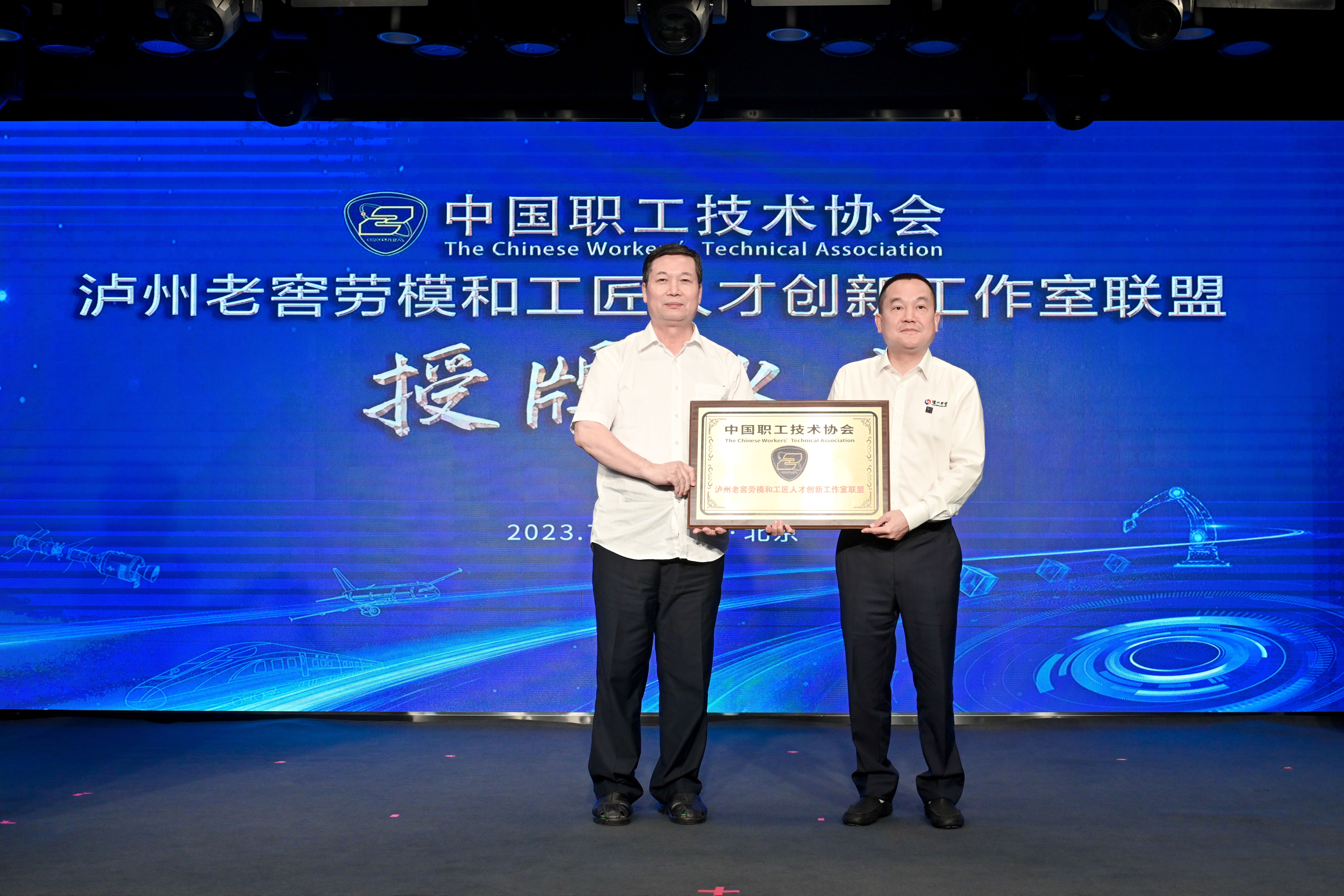 厚植职工创新沃土,再添全新平台。会上中国职工技术协会泸州老窖劳模和工匠人才创新工作室联盟授牌仪式举行,中国职工技术协会理事长李世明为工作室联盟授牌,刘淼代表工作室联盟接牌。