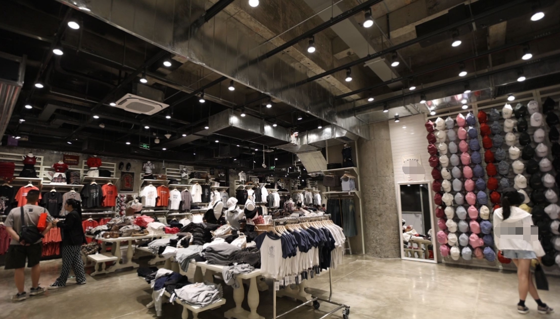 探店期间,记者现场注意到,发夹作为最便宜的单品之一,售价低至5.9元,夏季T恤及裤装价格在100元-300元不等,主攻这一价格区间的垂直潮牌赛道。此外,地下一层、仓储式零售、推车选购物、工业风装潢、适应打卡拍照功能的试衣空间、没有穿工作服的高挑店员……一系列“让你万万想不到”的元素合在一起,让来到这里的消费者感受到崭新的潮流购物体验。