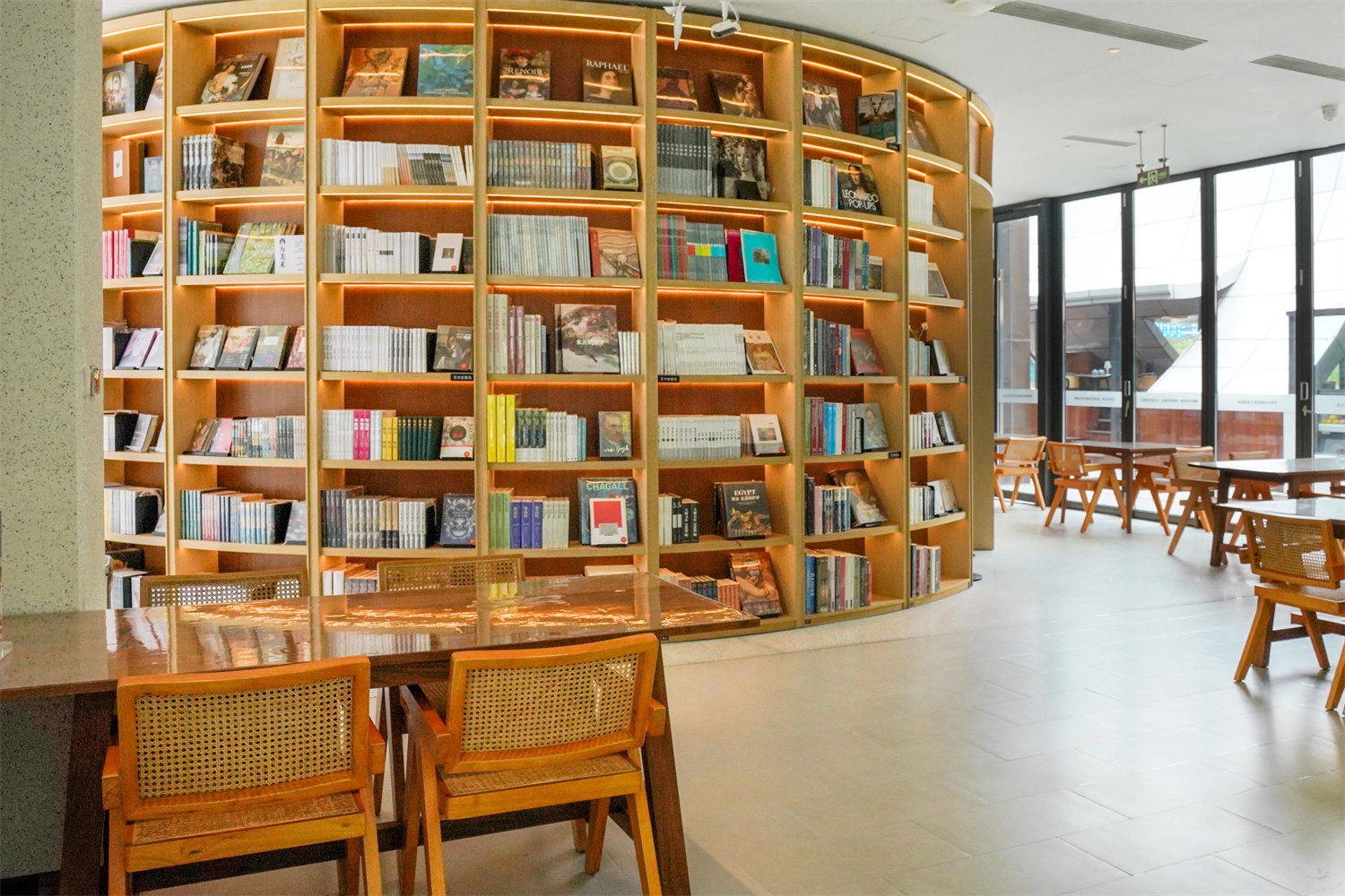 据朵云书院西南首店相关负责人介绍,店内,除了精选有1900年之前的古典艺术图书和1900年之后的艺术潮流图书的图书区,还有文创区和餐饮区,打造复合式阅读文化空间,希望能让读者徜徉书海、忘却时间、沉浸在艺术史的长河之中。