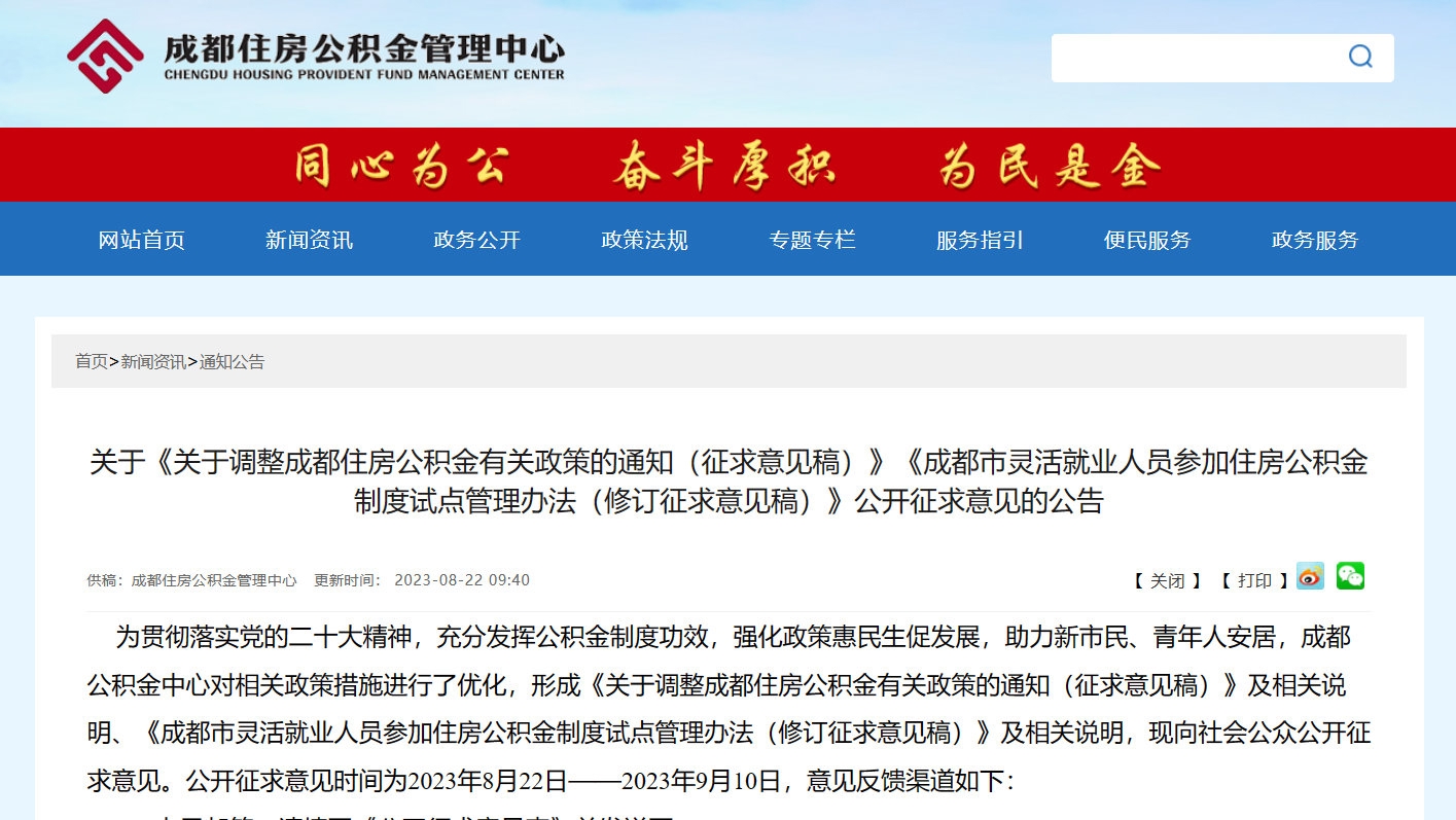 2.信函请寄至:成都市高新区天府大道北段1288号泰达时代中心3号楼816室成都住房公积金管理中心政策管理部(请在信封上注明“公积金政策调整意见征集”);