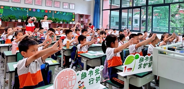 在志愿者的指导下,同学们用多彩的画笔描绘出他们心中的“绿书签”,小小的书签就像一盏盏明灯,照亮了孩子们健康阅读的方向。