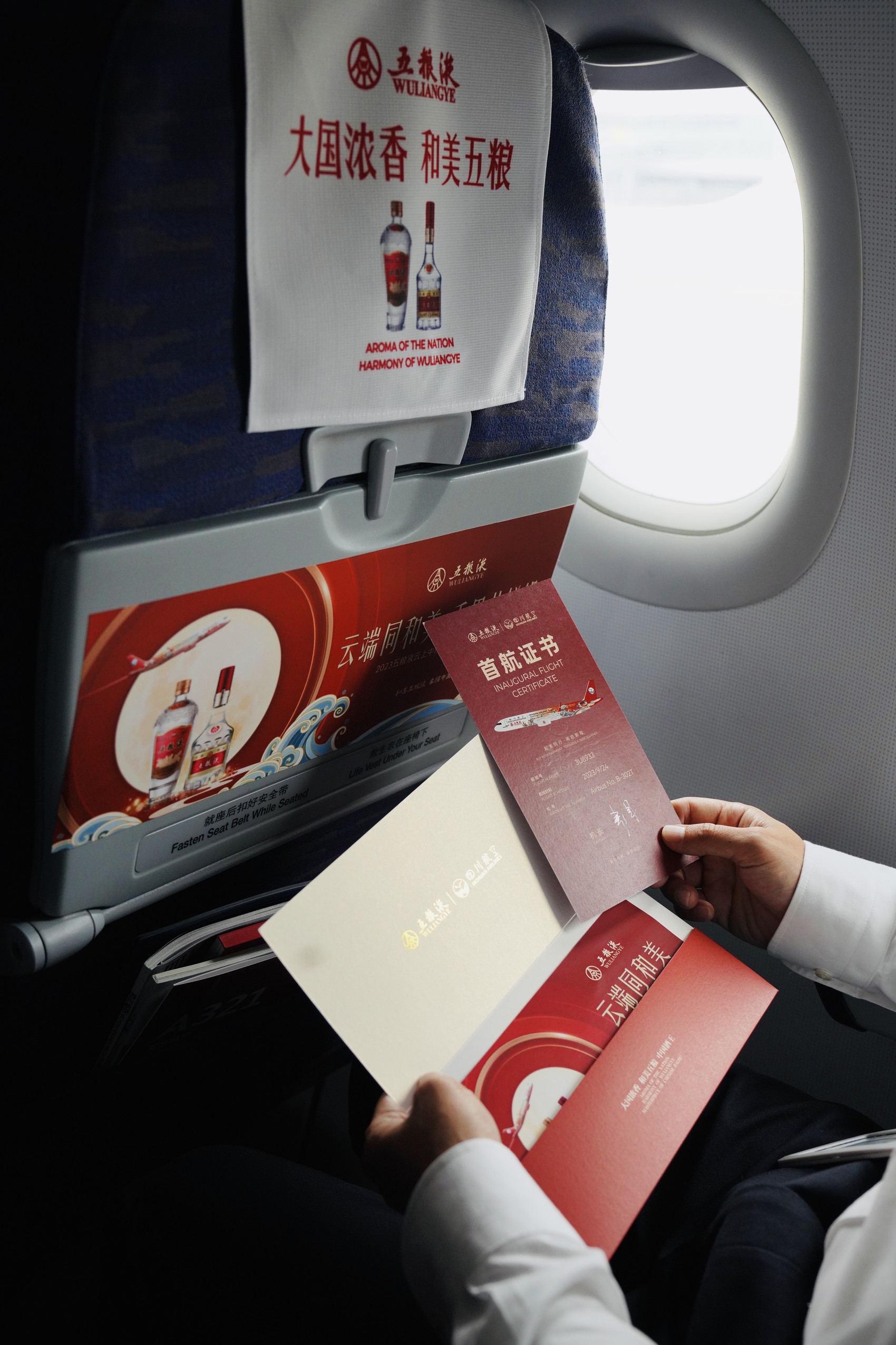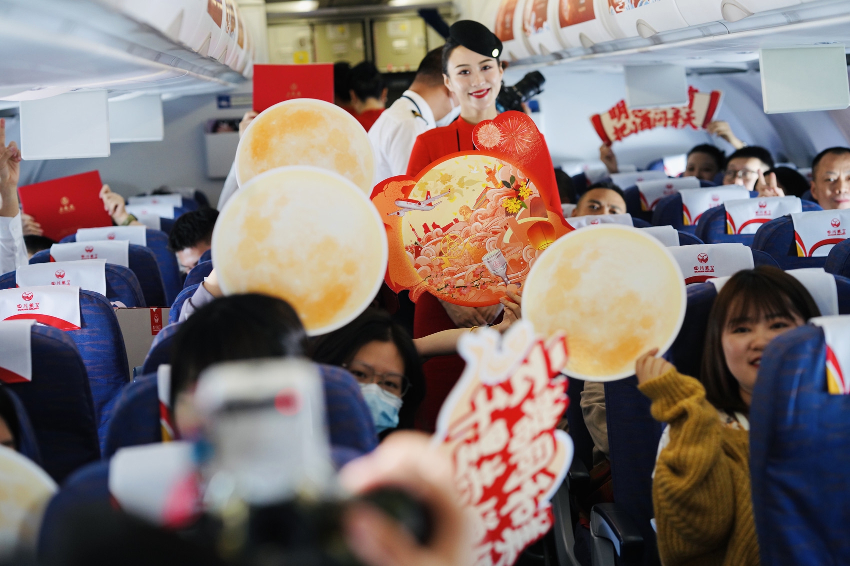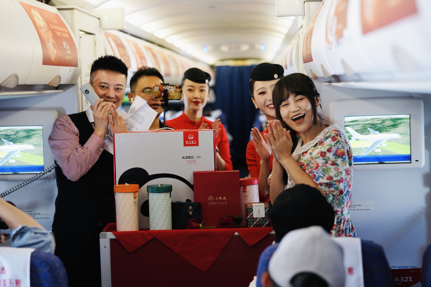 9月24日11时39分,五粮液联合四川航空正式推出的云上中秋主题航班首飞。当天在机上举行的“云端同和美 千里共婵娟”主题活动中,除了诗词互动,还有带有浓厚联名特色的航餐、精美的礼品,给乘客们带来一段令人期待的和美体验。