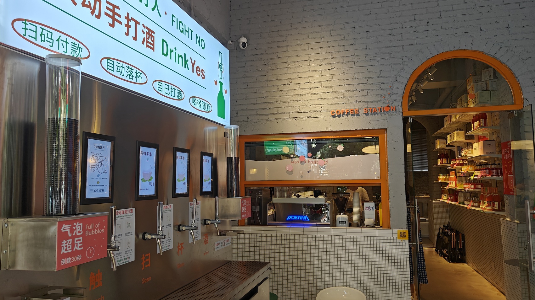 挑选口味、扫码付费、自动给杯、自助打酒、DIY调酒,全套流程操作下来不到1分钟……