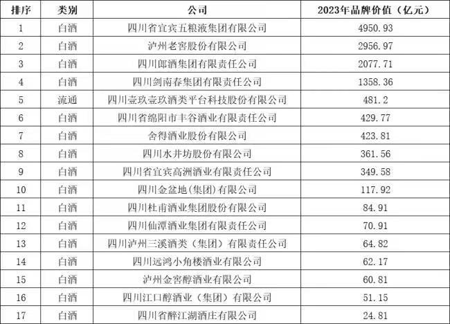 《华樽杯第十五届中国酒类品牌价值200》四川入选酒企名单