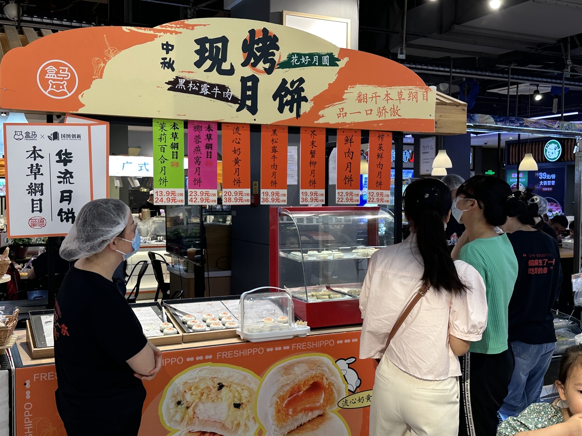 今年国庆大假遇上中秋节,不少商超还以月饼作为切入点,抢抓“金九银十”机遇。盒马与国家图书馆旗下北京国图创新文化服务有限公司(简称“国图创新”)联名推出《本草纲目》系列商品,其中茉莉百合绿豆月饼和椰蓉燕窝月饼将本草饮食文化植入其中,大获欢迎。盒马3R商品中心总经理田鑫表示:“我们希望通过自身的爆品创造能力,把传统典籍中的饮食文化要素抽离出来,融入到盒马新品的研发中。此次推出的新产品,不仅深度融合古籍中的优秀传统文化内涵,还非常注重好吃和健康。”