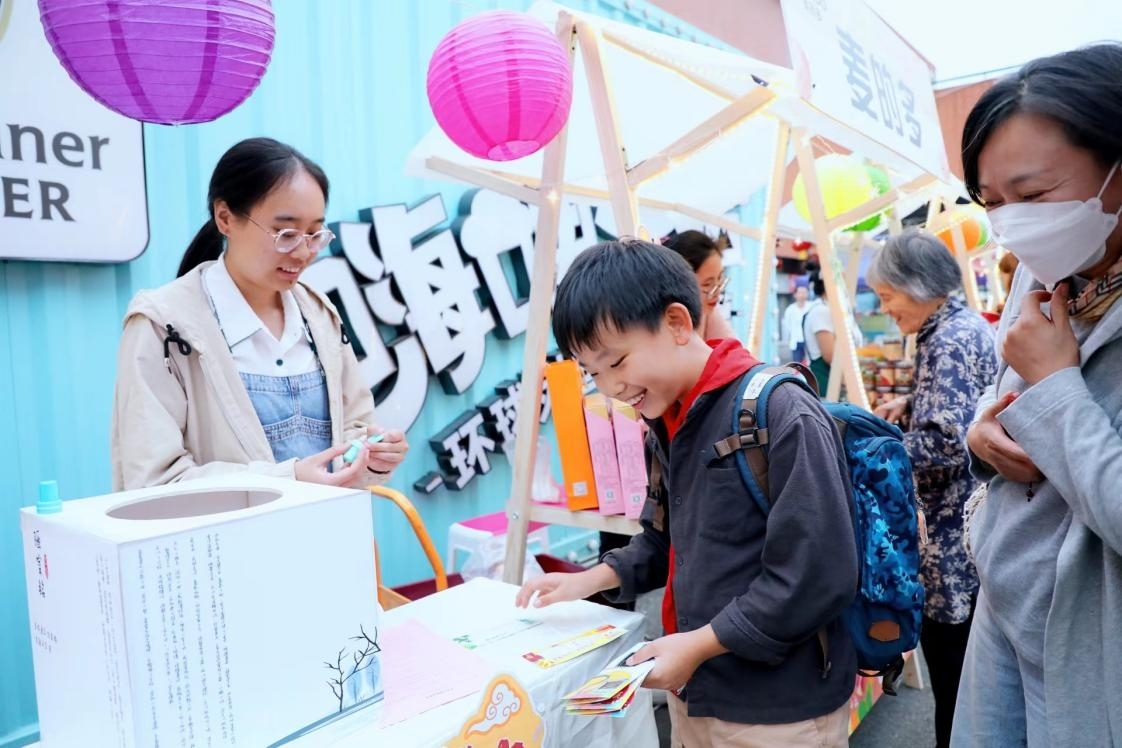 中海社区围绕“嗨聚中海、金秋集市”主题品牌,营造集消费、趣味游园、社区漫步、文艺展演为一体的新型社区快消费场景,协调本地商家、社会组织参与联动,共计发放上千元的集市消费券,集市上还设置了众多主题活动区域,包括音乐表演、节日打卡、国庆祝福等活动,还设置了制作花灯、诗词接龙、投壶等传统文化游戏,社区居民可以一边逛集市、参加游园互动、欣赏精彩的特色节目表演,一边到主题点位参加打卡抽奖活动,三五好友成群结对,“City Walk”(城市漫步)乐不思蜀。