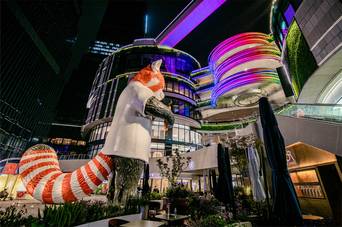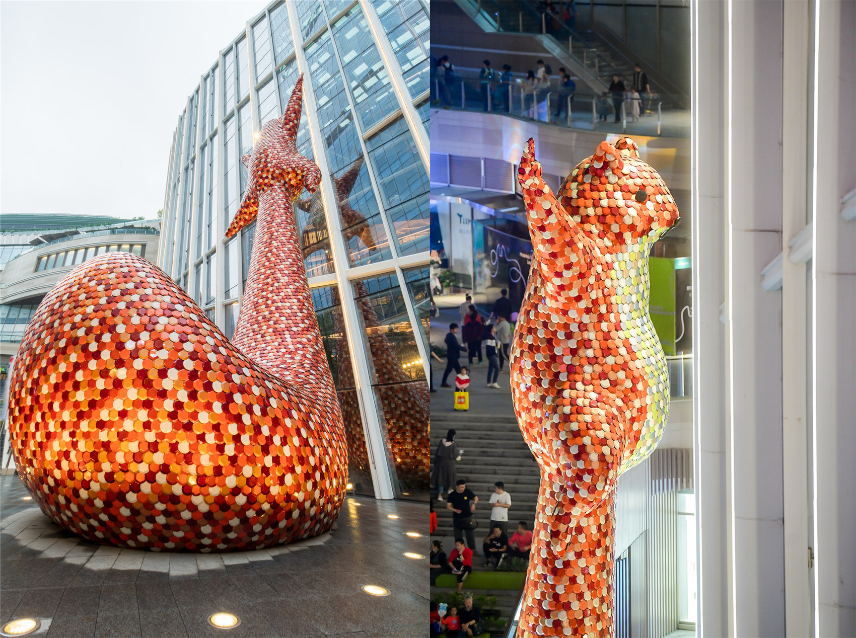 在重庆,香港置地打造的光环购物公园与霍夫曼联手打造了项目永久性艺术装置IP——“松鼠闪闪”,其全身由16500片特制彩色金属片制成,甫一亮相便成为该商业体的“打卡”地标之一。