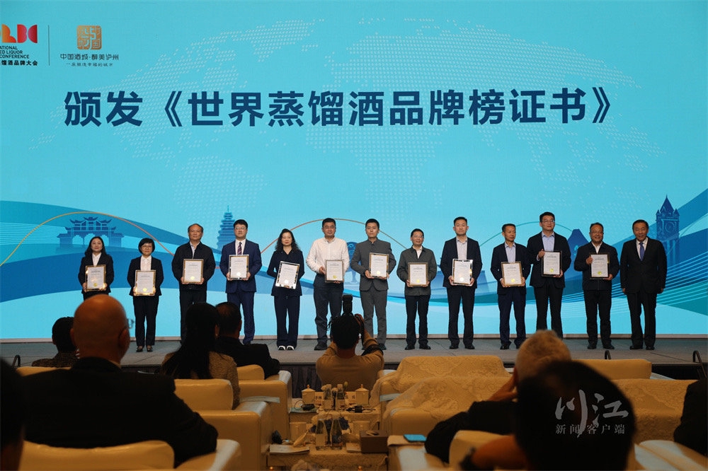 大会上,“世界蒸馏酒十大产区”及《世界蒸馏酒品牌榜》《中国白酒品牌价值榜》首度发布,并举行了“国际蒸馏酒品牌中心”落户泸州的授牌仪式。