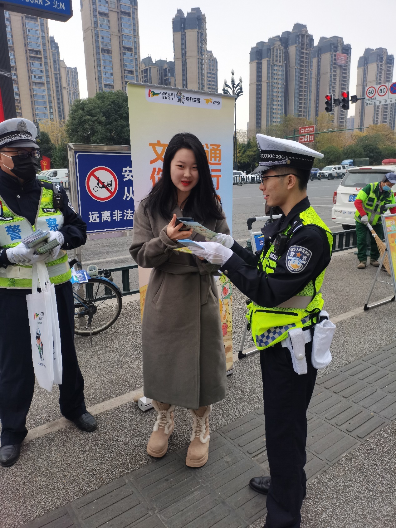 12月2日是第十二个“全国交通安全日”,为进一步提升市民交通安全意识,养成良好的出行习惯,倡导文明交通,在成都交警十分局的指导下,美团单车联合成都交警十分局的勤务一工作队、三河工作队开展了主题为“文明交通 你我同行”的线上线下宣传活动。