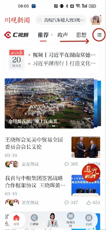 步骤二:打开川观新闻,点击右上角频道图标。
