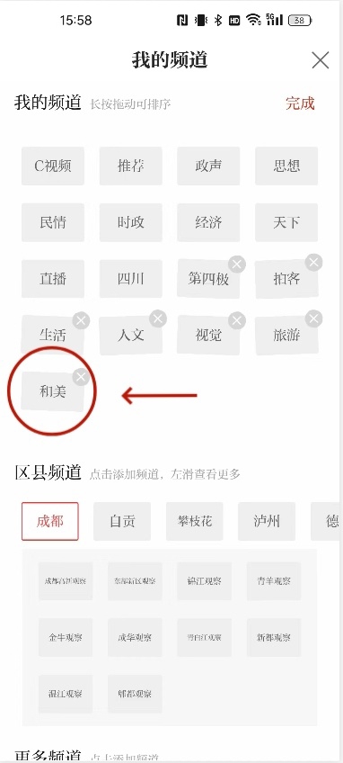 步骤二:频道订阅拉到最下端,点击“和美”模块,使其弹到“我的频道”处。