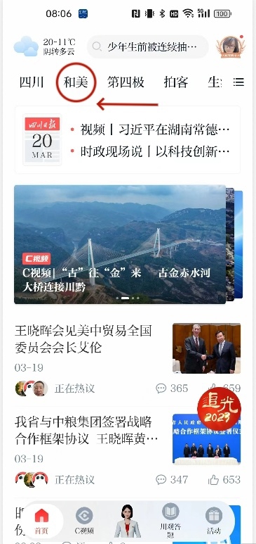 下载川观新闻客户端,关注“和美”频道,操作步骤如下: