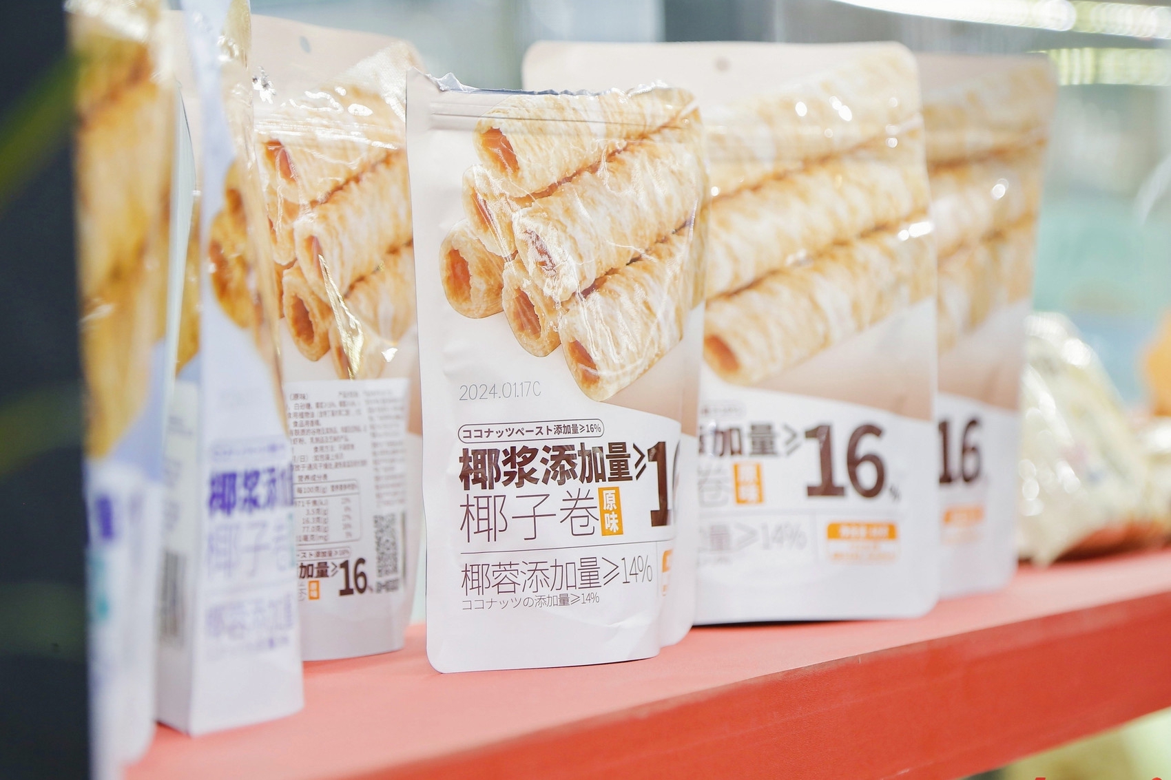高蛋白、高纤维的原料是“轻养生”零食的一个方向。“这款饼干的配料表比较干净,是新生代消费者的追求,他们更愿意为高品质的东西买单。”陕西红谷林食品展台的工作人员说。这次糖酒会,他们带来了多款粗粮苏打饼干,“这些产品中的奇亚籽、藜麦等高纤维可以帮助减轻肠道负担。”