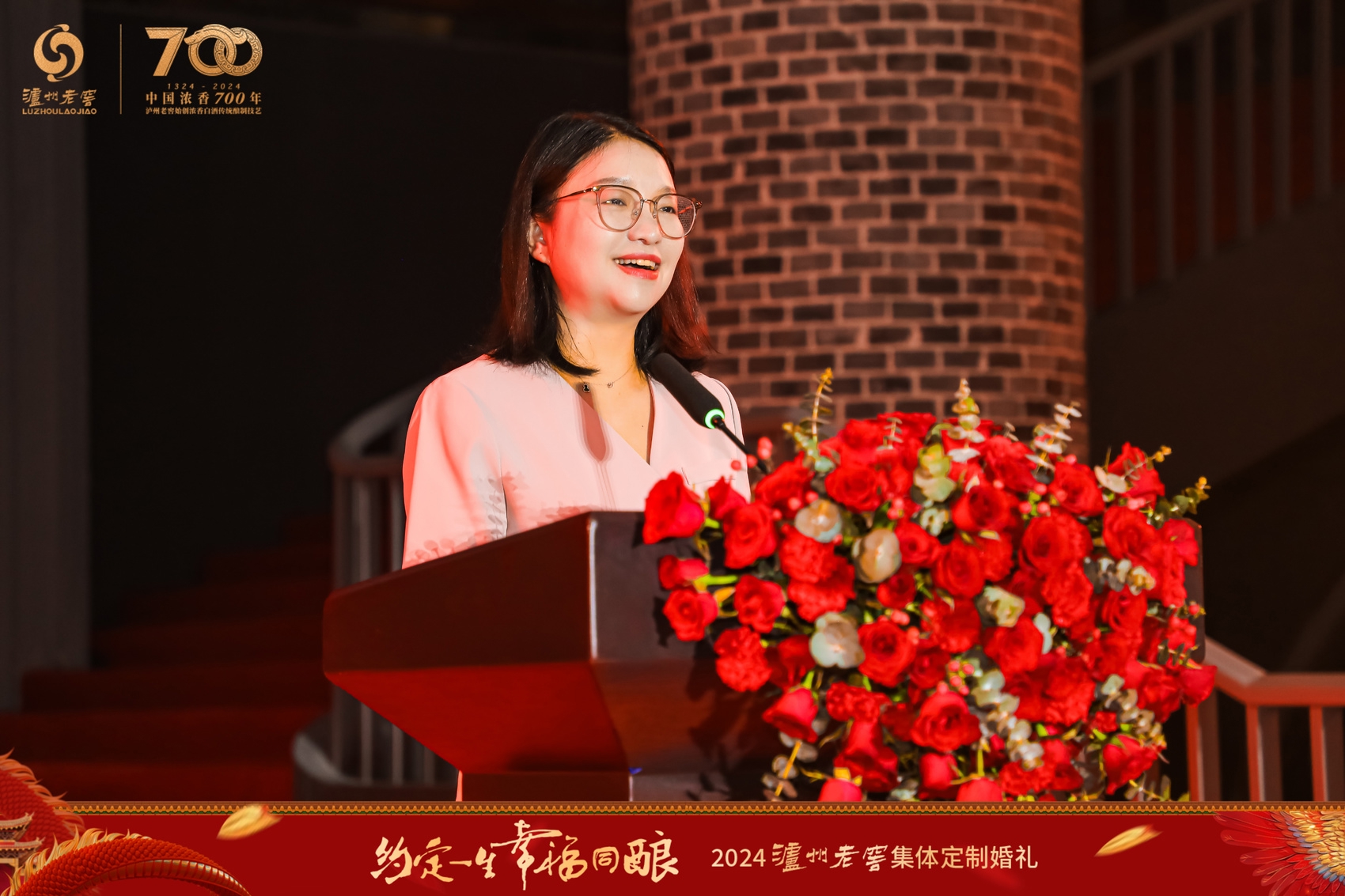 泸州老窖股份有限公司副总经理、工会主席熊娉婷为新人们送上祝福。