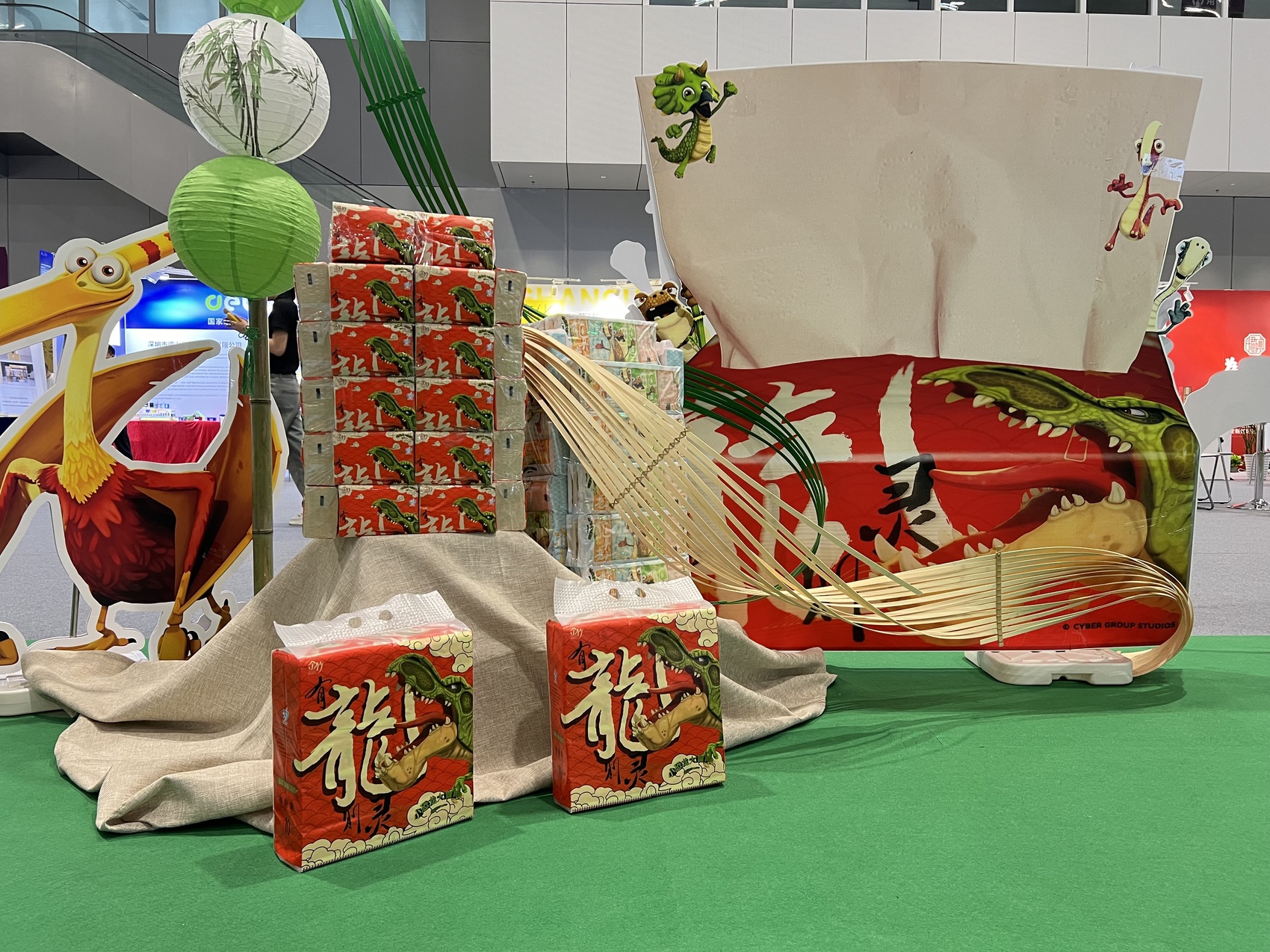 据介绍,这款产品是宜宾纸业旗下的“金竹”品牌与宏京文化旗下的法国动画IP《小恐龙大冒险》的定制联名款产品,也是一款100%原生竹浆纤维纸品,主要是针对亲子市场。“除了文创属性之外,这款竹浆纸在品质方面升级为医护级认证、母婴级呵护的优等纸品。”宜宾纸业相关负责人表示。