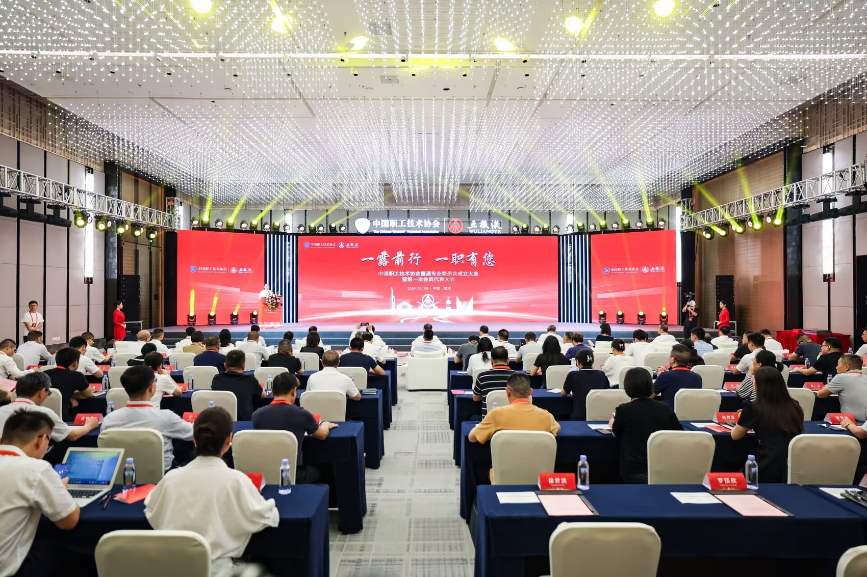7月9日,中国职工技术协会露酒专业委员会成立大会暨第一次会员代表大会在宜宾召开,大会以“一露前行 一职有您”为主题,由中国职工技术协会主办、宜宾五粮液股份有限公司承办、宜宾五粮液仙林生态酒业有限公司协办,旨在共同交流经验、凝聚发展共识,不断提升全国露酒行业职工技术水平,推动中国露酒产业高质量发展。