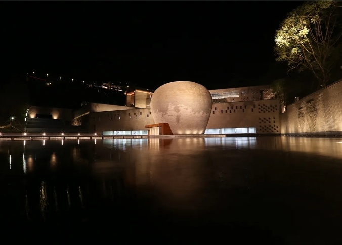 此次入围世界建筑节本年度展示类建筑的“地之阁”,坐落于天宝峰之巅,依山而建,面东而立,外形如一柄玉如意,是郎酒庄园地标建筑之一。据介绍,“地之阁”由众多生肖文化主题空间环绕布局,设置有参观、勾调、餐饮、娱乐等沉浸式白酒文化相关体验,是郎酒庄园生肖酒的品鉴和体验之地。