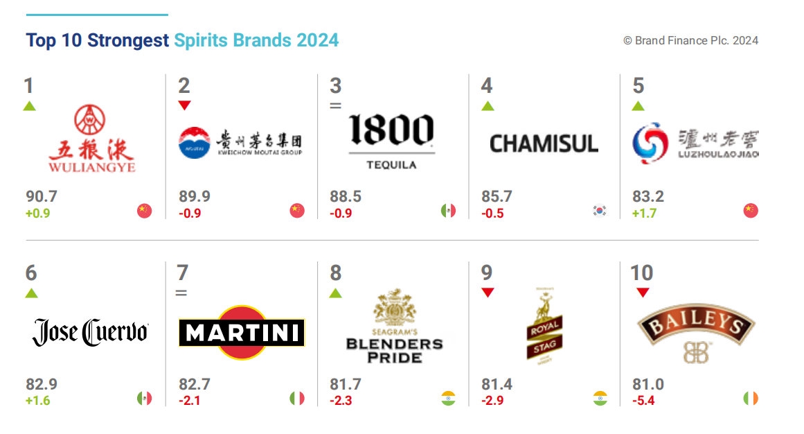 7月24日,品牌价值评估咨询机构Brand Finance发布了《Brand Finance2024年全球最具价值酒类品牌》榜单。该榜单包含全球啤酒榜50强,全球烈酒榜50强与全球红酒榜15强。川酒品牌五粮液、泸州老窖荣登全球烈酒榜TOP10名单,舍得位列第14名。
