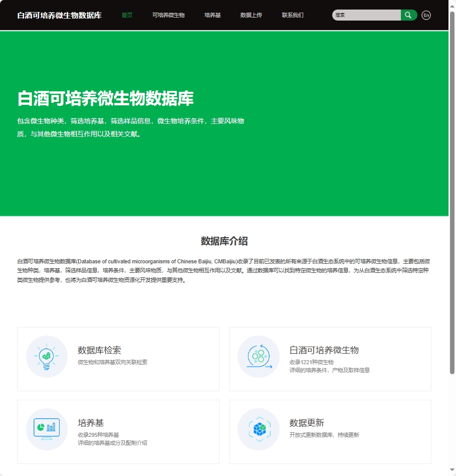 据介绍,白酒可培养微生物数据库当前共收录1221种白酒可培养微生物和295种培养基信息,主要包括微生物种类、培养基、筛选样品信息、培养条件、主要风味物质、与其他微生物相互作用以及文献,可用于白酒可培养微生物相关信息检索,辅助白酒微生物分离筛选。