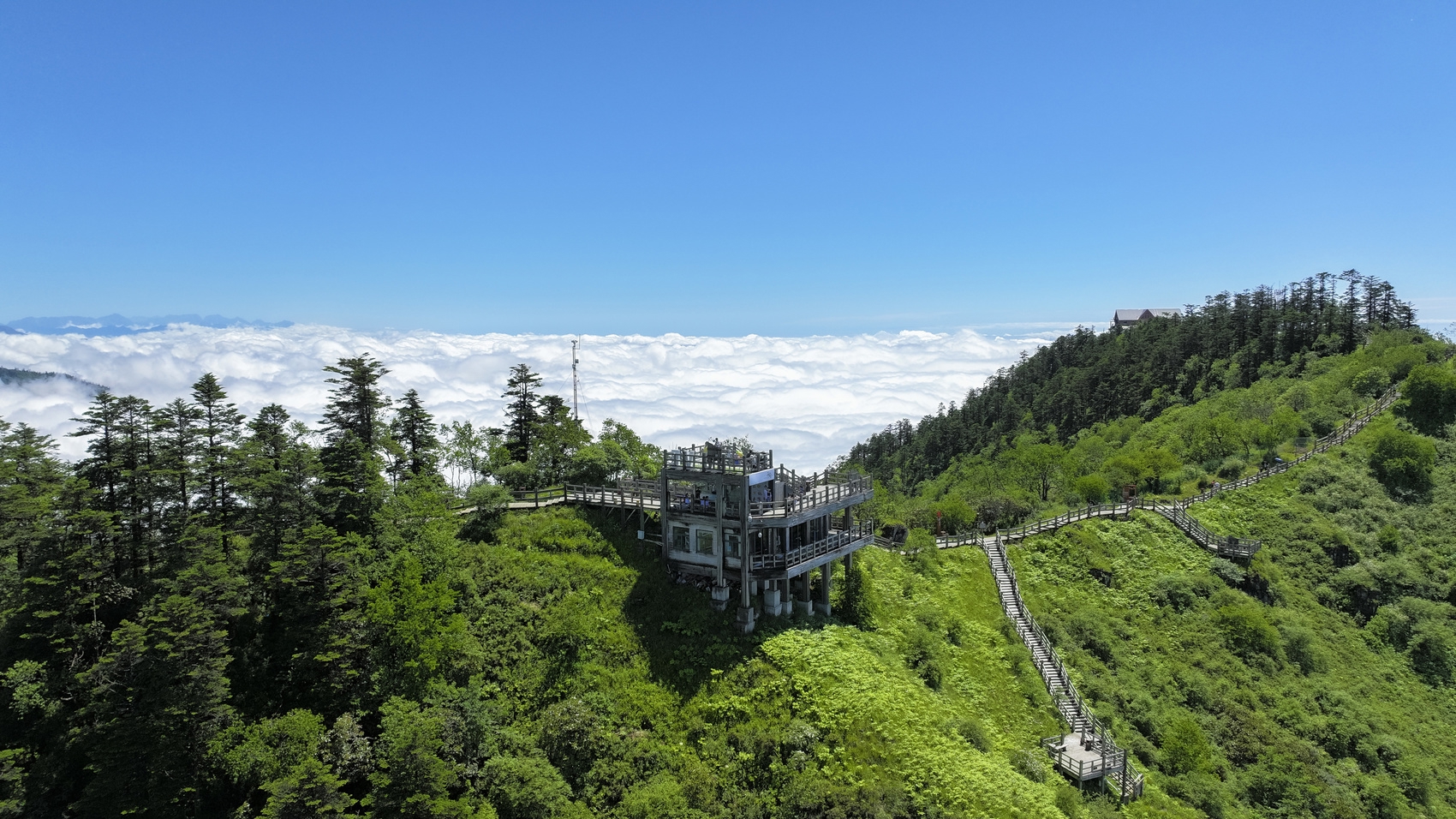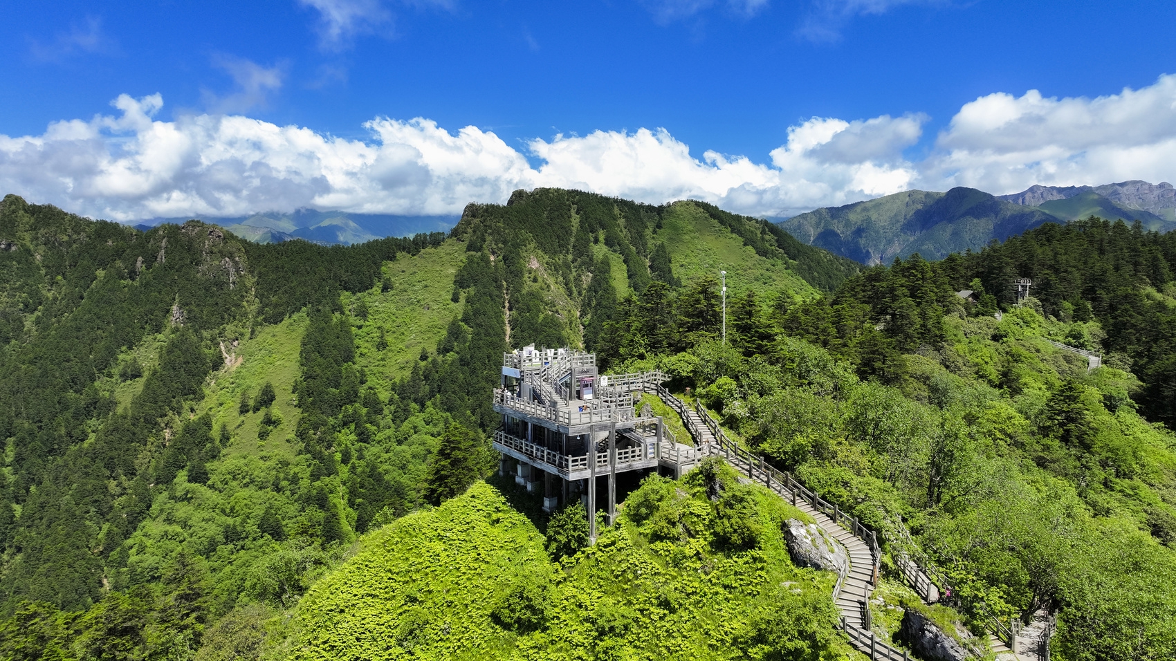 根据景区工作人员实测,今年夏季山顶日月坪温度平均在15℃左右,游客纷纷表示被这种“天然空调”硬控了。除了宜人舒适的温度,日月坪区域还打造了“浪漫之巅”场景,走出索道站房,充满爱意的粉色“浪漫天梯”便映入眼帘。七夕,在海拔3250米的山顶,许下山盟海誓,让爱情在群山间见证浪漫,赋予爱情最高的仪式感,让爱变得更加具象化。