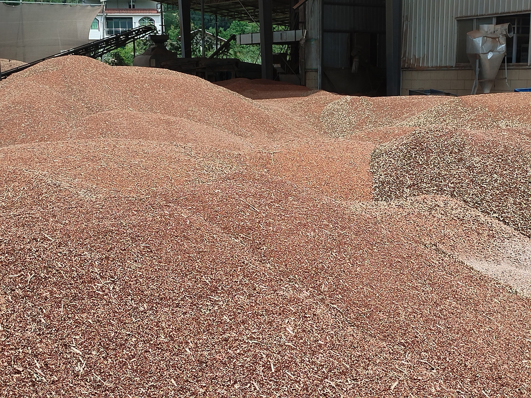 等待烘干的高粱夹着一些叶子,秸秆堆成一座红色的小山,占据仁和镇农产品加工中心卸货坝子近一半面积。大门口还不断有运送高粱的车辆,源源不断将刚刚从地里收割的高粱送来。