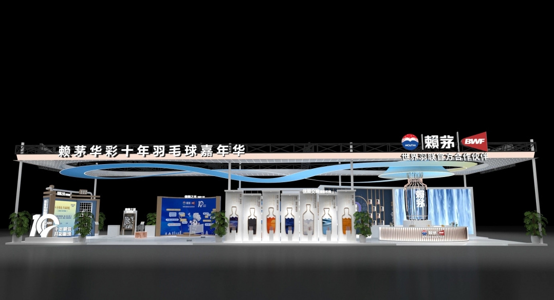 本次赖茅华彩十年羽毛球嘉年华位于贵阳国际会议展览中心4号馆4号门处,整体展馆设计以艺术美学与品牌文化为核心,以“真情”和“信赖”为主题,巧妙融合莫比乌斯环的理念,寓意赖茅美酒历史悠长、与合作伙伴及消费者的情感纽带历久弥新。在这里,世界羽联纪念、一代工酱、生肖酒、易捷十周年纪念、传承、品鉴尊享、精典、红御等25款经典佳酿逐一亮相,端曲2.0雅韵版、传禧2.0雅韵版等7款主打产品及特调鸡尾酒更是诚邀品鉴,让每一位观众都能近距离感受赖茅酒的文化底蕴和酱香魅力,沉浸式体验一场视觉与味觉的双重盛宴。