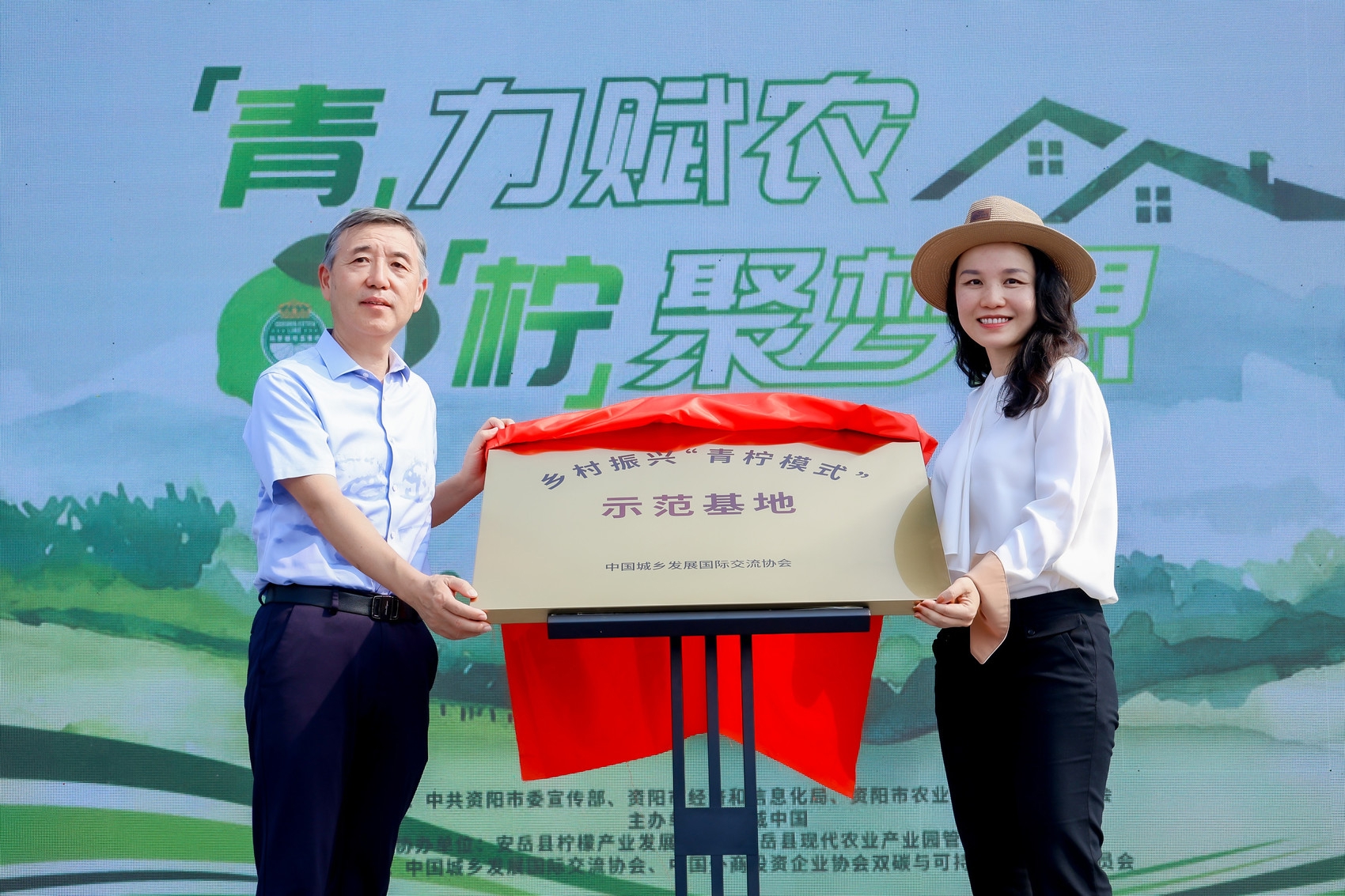9月26日,安岳县石桥街道戏楼村的一块柠檬地边,一场特殊的发布会在这里举行。在这场名为“乡村振兴‘青柠模式’ ”的发布会上,中国城乡发展国际交流协会为戏楼村智能化青柠种植基地授牌“乡村振兴‘青柠模式’示范基地”。