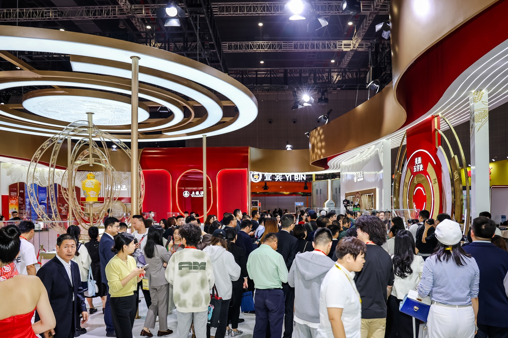 在上海国家会展中心5号馆,五粮液展厅自酒博会开幕以来,每天人潮涌动,现场品鉴、拍照的中外客商络绎不绝。