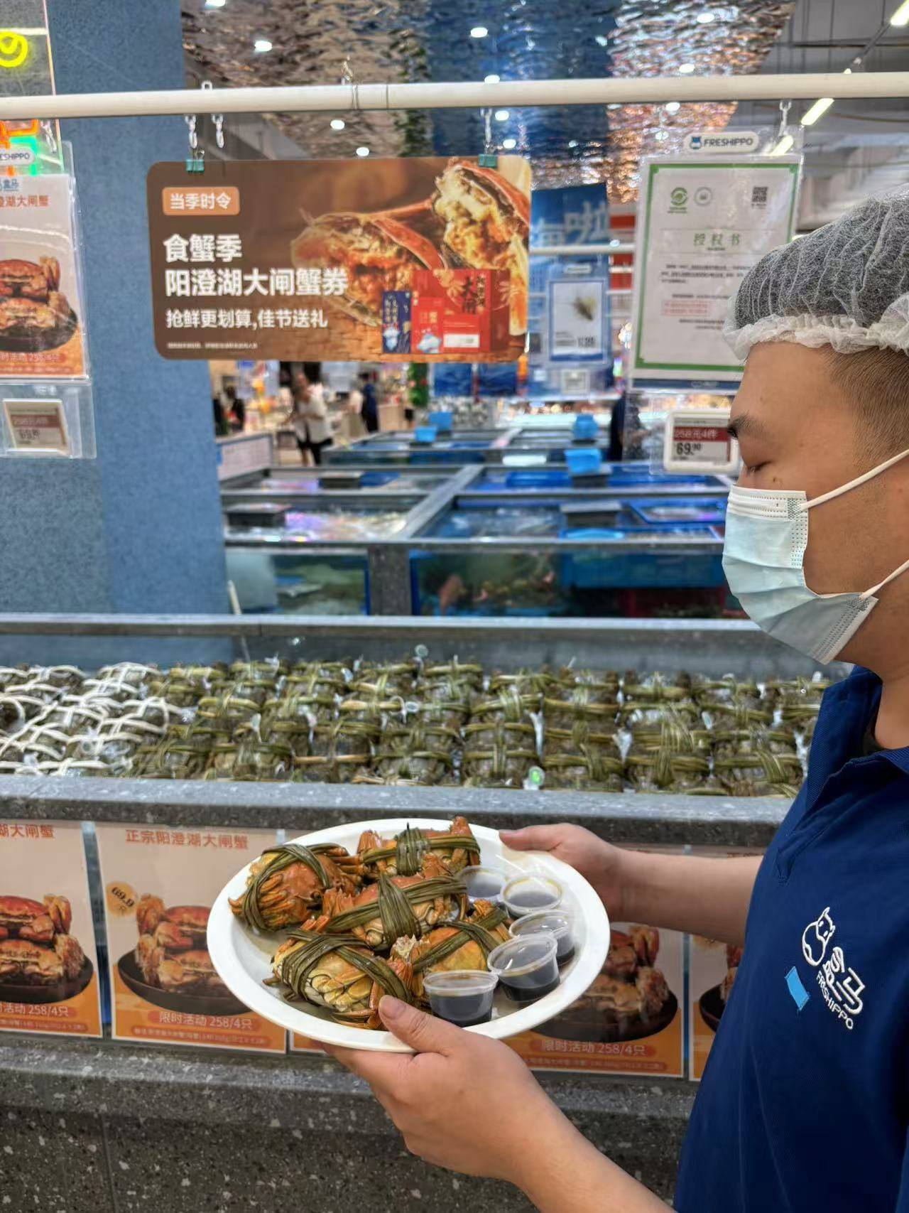 看供给端。盒马专为“吃货”老饕开发了椒麻炒、黑胡椒炒、柠檬捞汁等新口味成品选择,同时进一步提升便民度,市民购买大闸蟹等水产品后,可以直接在门店代客加工。