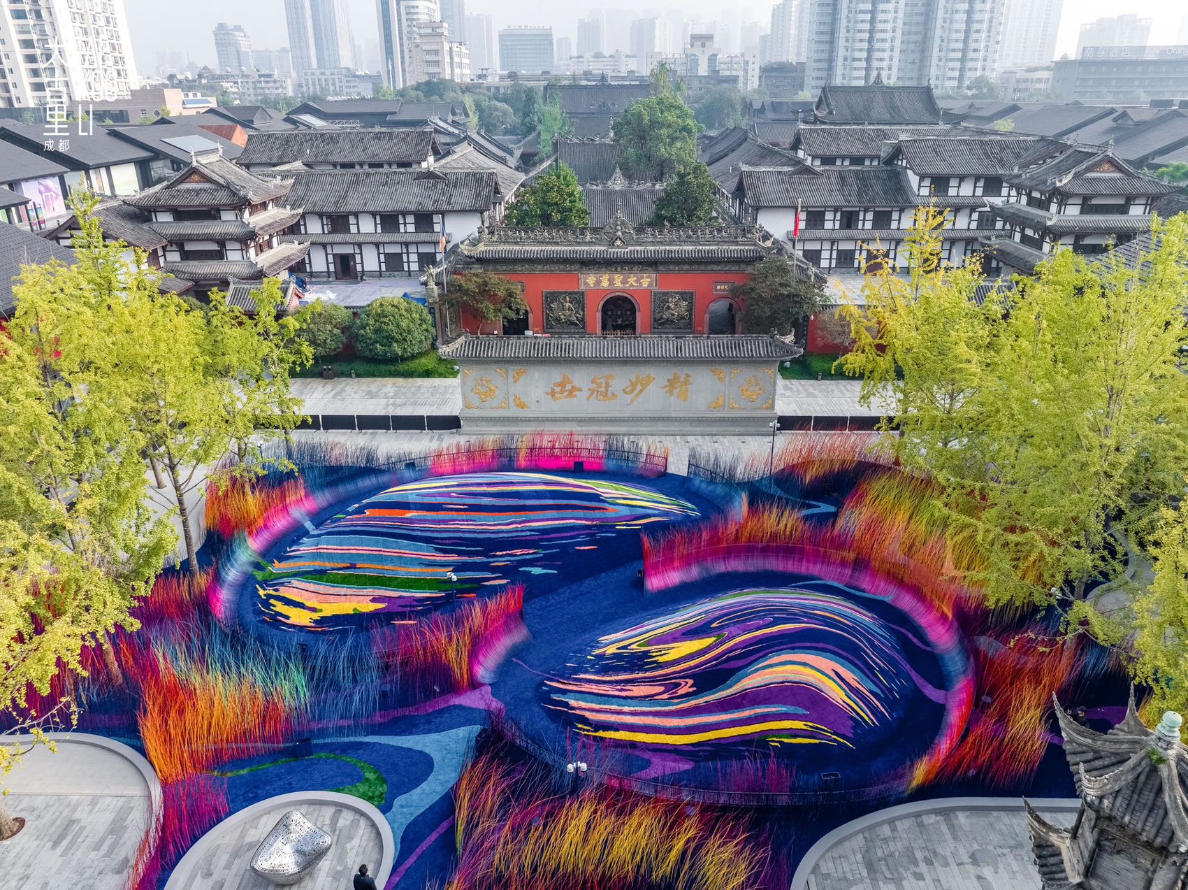 穿梭里巷,当你走近这块五彩“拼图”,自古大圣慈寺的围墙处传来的丹桂香,浩浩荡荡,不禁让人感慨,“今年成都的桂花香虽迟但到”,一眨眼,肆意弹跳的人不时在“山丘”之巅跃起,落下……好一幅“快耍慢活”的成都生活方式图景具象地展现于成都头部商业体的街区之中。