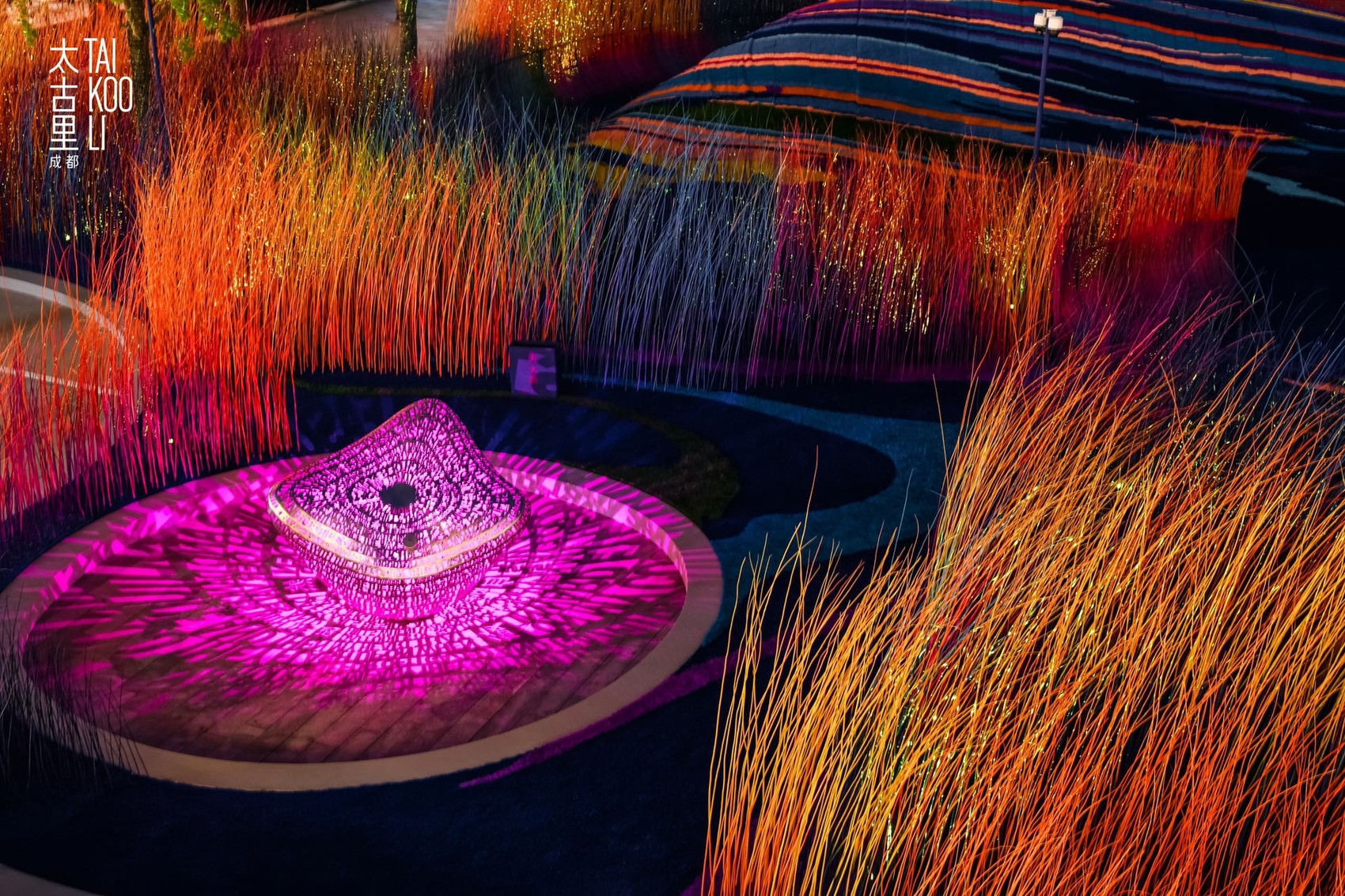 新场景体验层面,漫广场上“山丘”悦动起伏,杞柳枝丛环绕……人们穿行于“山丘”小径,仿佛步入一幅自然画作,自在惬意。入夜,山丘被灯光和音乐唤醒,闪烁的萤火虫光点在杞柳枝丛中跳动,悦耳的音乐轻覆于“山丘”之上,为公众带来既静谧又疗愈的身心体验,进而感悟美好。