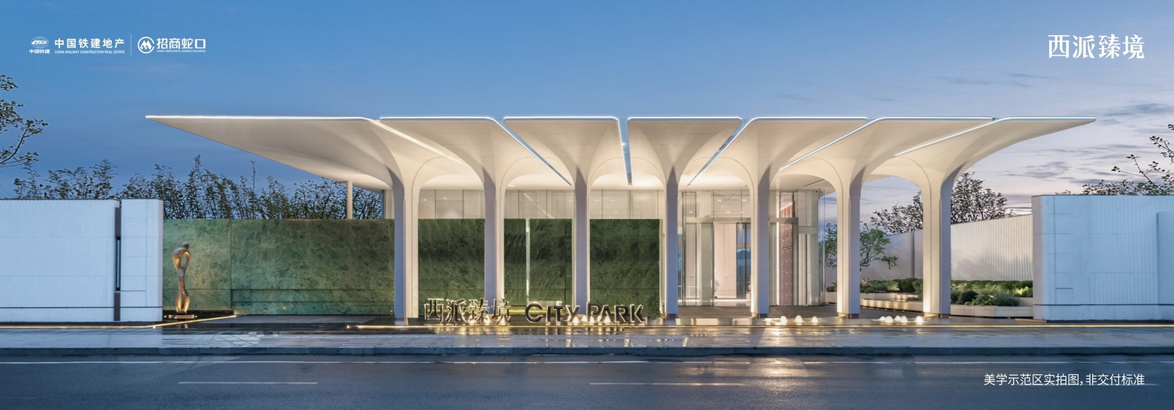 大气、新颖的建筑设计。美学示范区实拍图,非交付标准