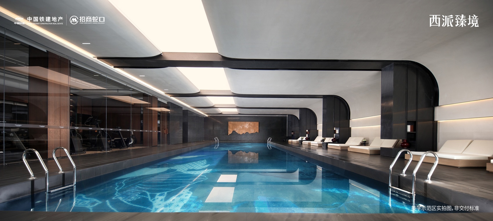 舒适美好的恒温游泳池。美学示范区实拍图,非交付标准