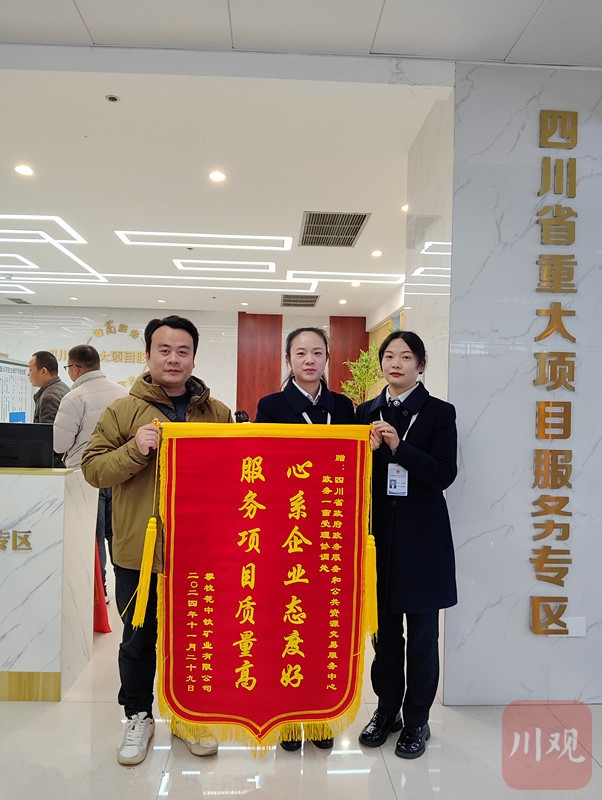 “太感谢了,如果不是你们的帮助,我们真不知道怎么办。”12月9日,攀枝花中钛矿业有限公司总经理张恭俊给四川省政府政务服务和公共资源交易服务中心(以下简称“省政务服务和资源交易服务中心”)四川省重大项目服务专区(以下简称“重大项目服务专区”)送来锦旗。