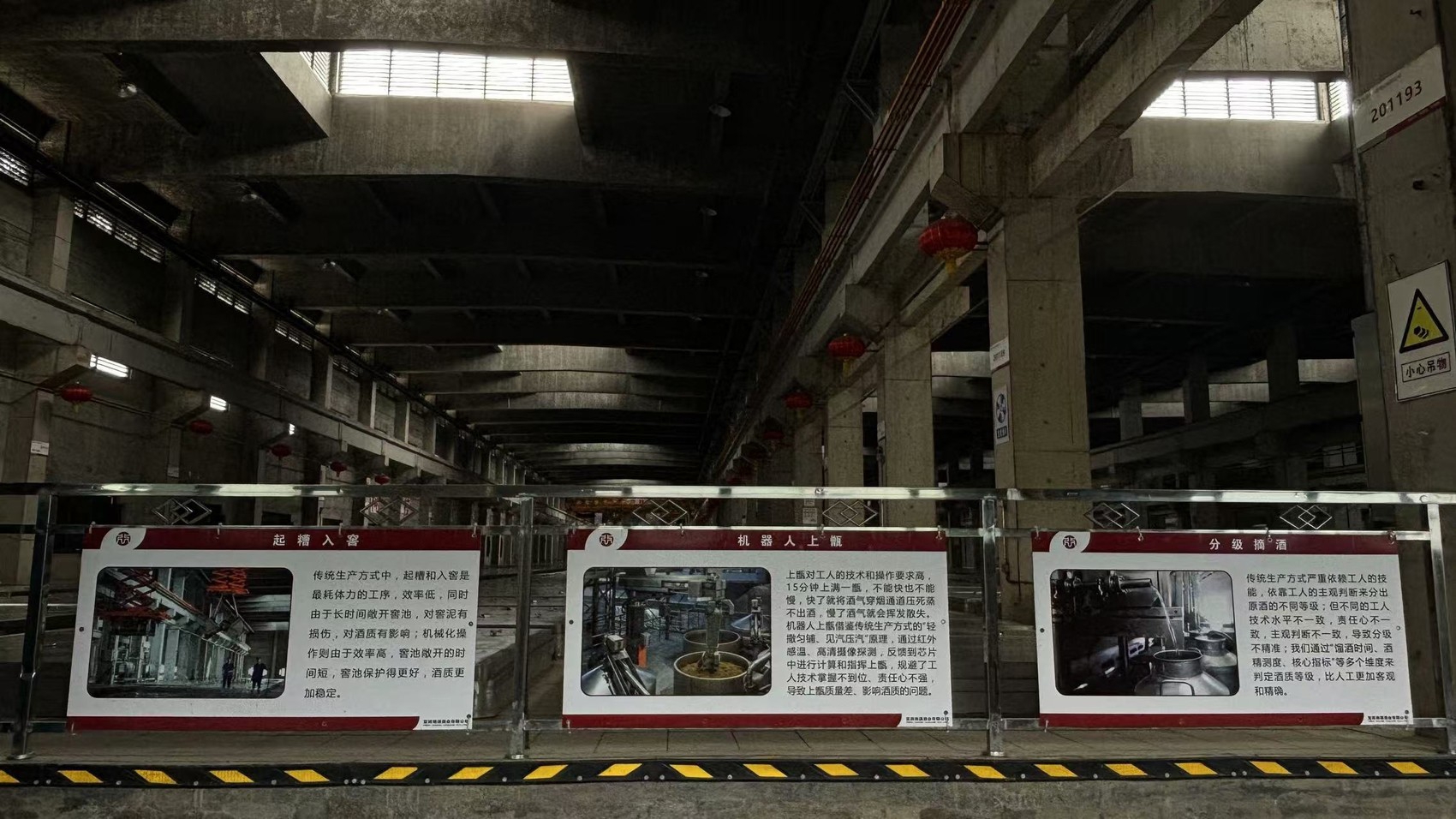 “机器人就位!”几乎在同一时间,记者在距离水巷子老糟坊几公里外的南溪食品产业园区的南溪酒业生产车间内看到的却是另一番景象,与传统酿酒车间里工人们忙碌润粮、拌料、上甑、摘酒不同,这里更多的是各种机器整齐划一的操作——智能行车起窖、机器人上甑、移动接糟……