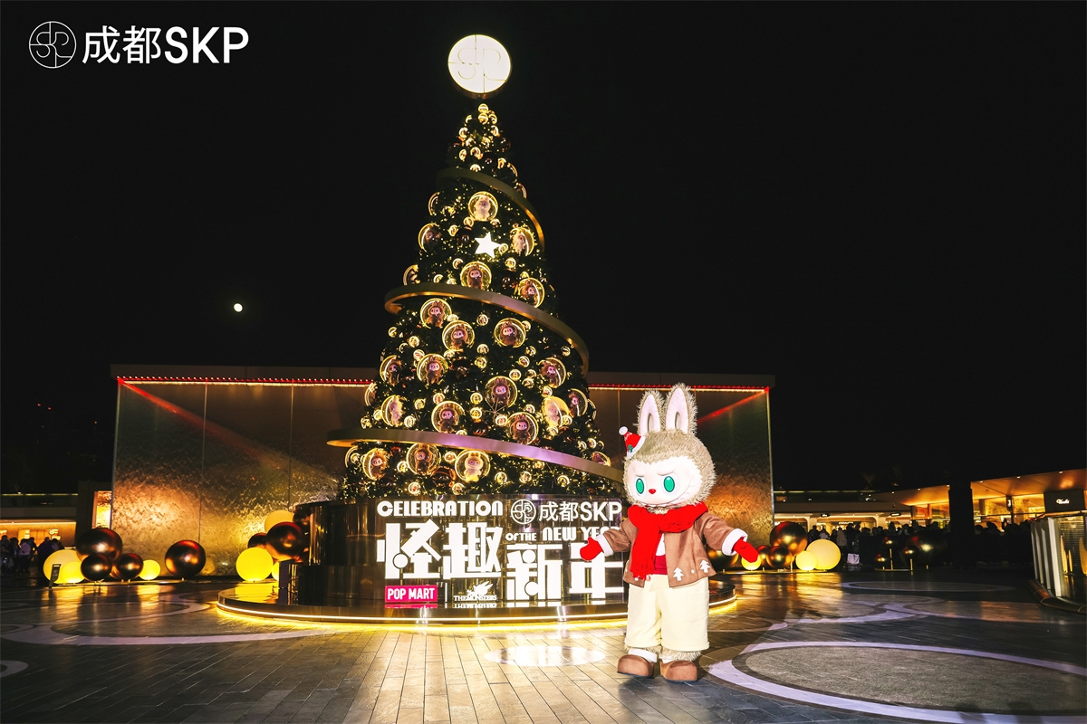 成都SKP“怪趣新年”亮灯仪式上,LABUBU用“魔法”点亮新年许愿树