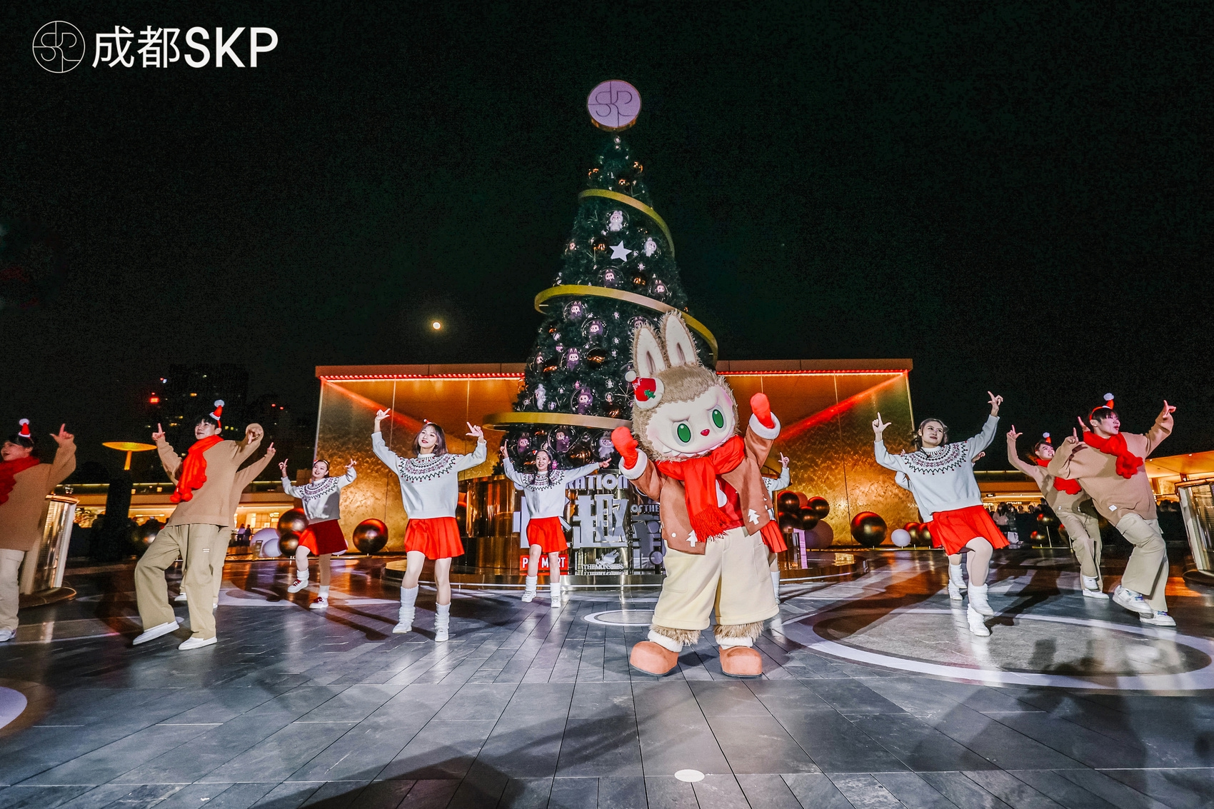 成都SKP“怪趣新年”亮灯仪式上,LABUBU带来《Jing-bu Bells》舞蹈