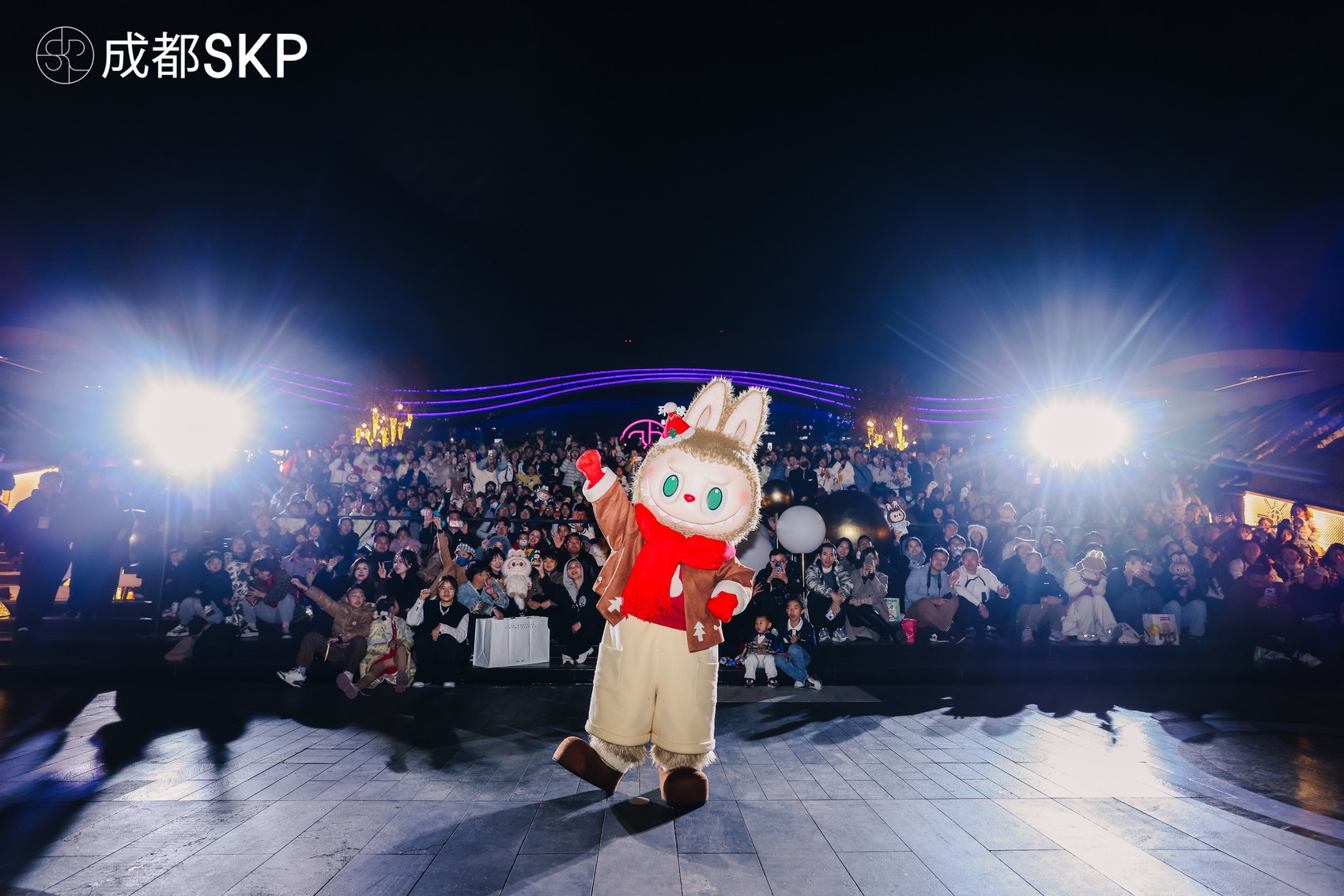 12月14日晚,LABUBU空降成都SKP“怪趣新年”亮灯仪式现场,它兴奋地挥动手臂,和现场超300位观众打招呼,并送上见面礼——圣诞限定舞《Jing-bu Bells》。“5!4!3!2!1!”在现场观众充满“愿望能量”的倒数声中,LABUBU用“魔法”点亮了LABUBU新年许愿树,成都SKP新年活动由此启幕。在随后的“好友见面会”环节,LABUBU还与现场观众进行互动,留下珍贵的冬日记忆。