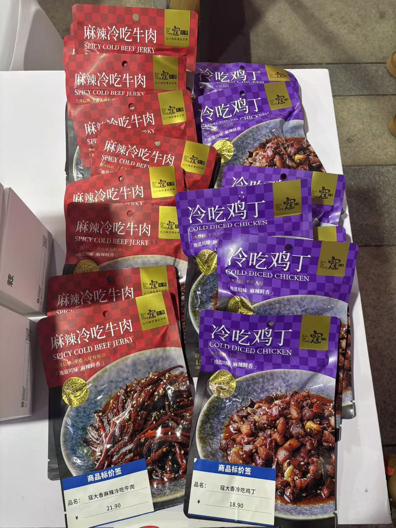 川味食品展区人气满满。“我们专注于手撕牛肉多年,现有手撕牛肉、风干牛肉、麻辣牛肉、灯影牛肉丝、卤汁牛肉、鸭舌等多个系列。”西昌思奇香食品有限责任公司相关负责人一边为顾客装牛肉干一边告诉记者。
